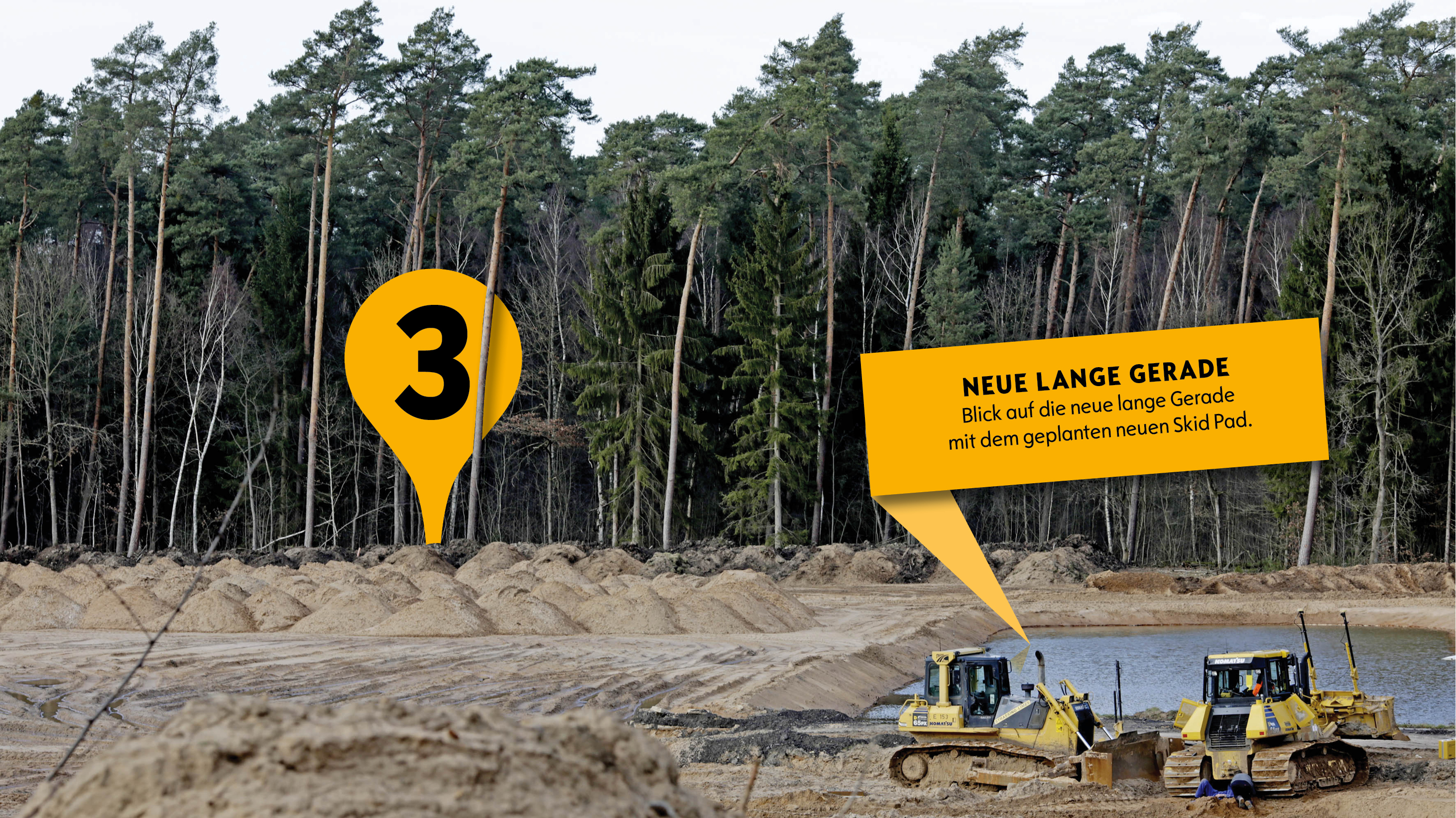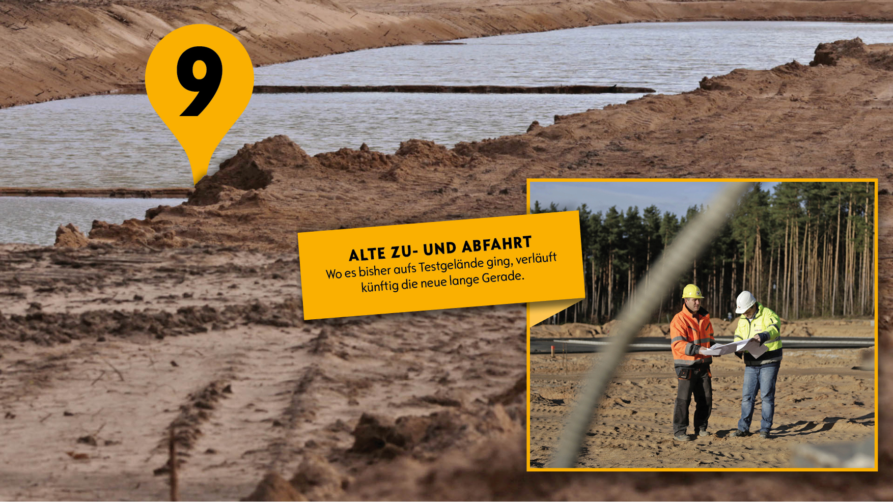 Wo es bisher aufs Testgelände ging, verläuft die neue lange Gerade.