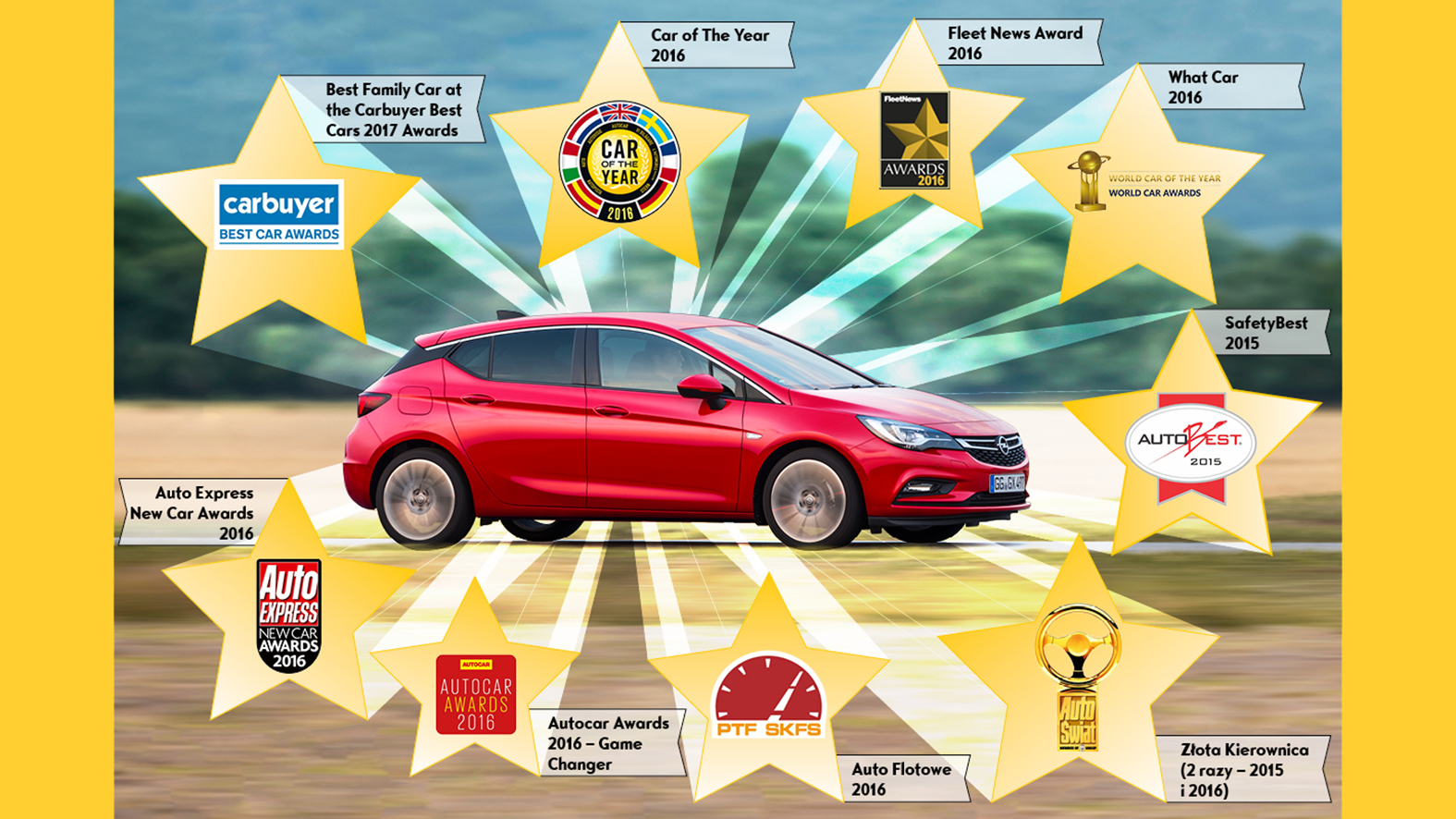 Na naszym rodzimym podwórku już pod koniec 2015 roku Astra zdobyła podwójną „Złotą Kierownicę” w głosowaniu zorganizowanym przez redakcję „Auto Świata” – w kategorii Auto Kompaktowe i Crossovery oraz Samochód Roku Internautów. A to był tylko zwiastun jej dalszej drogi przez chwałę.