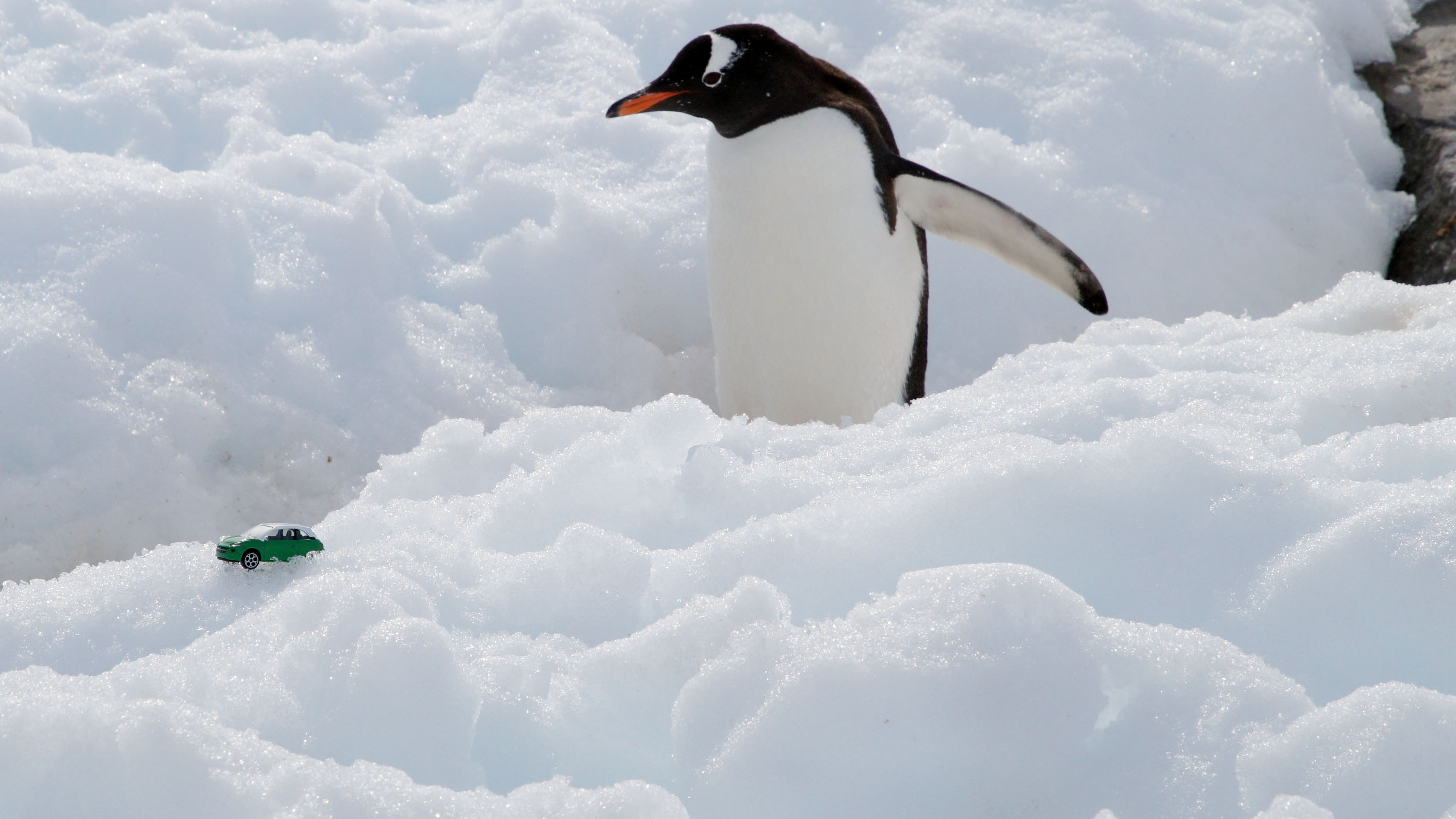 Most recently, though, Gerald Heeb took a trip down south; to the Antarctic, to be precise. To get there, he flew from Frankfurt to Madrid, and from there to Santiago, Chile, and finally to Punta Arenas, where he boarded a ship. Onboard the 135-meter-long MS Midnatsol, his journey took him from Punta Arenas, through Cape Horn and the South Shetland Islands to the Antarctic peninsula, then up through the Falkland Islands and back to Punta Arenas. “I’m mainly interested in witnessing the beauty of the landscape and the local wildlife,” says Heeb of his passion for cooler climes. The breathtaking photos he took in the Antarctic testify to that passion. They also demonstrate – in a tongue-in-cheek way – that the Opel ADAM model he specially packed for the trip is weatherproof.