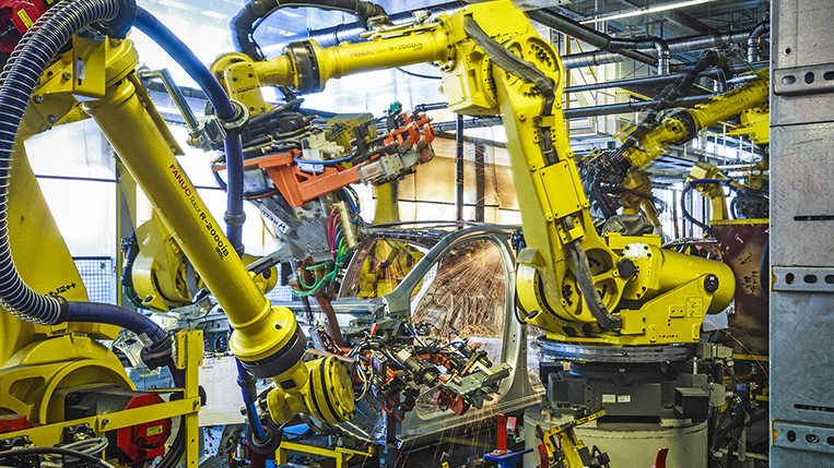 - Bevor das Fahrzeug seinen Decklack erhält, werden in der Lackiererei vollautomatisch alle Nähte der Karosserie versiegelt.