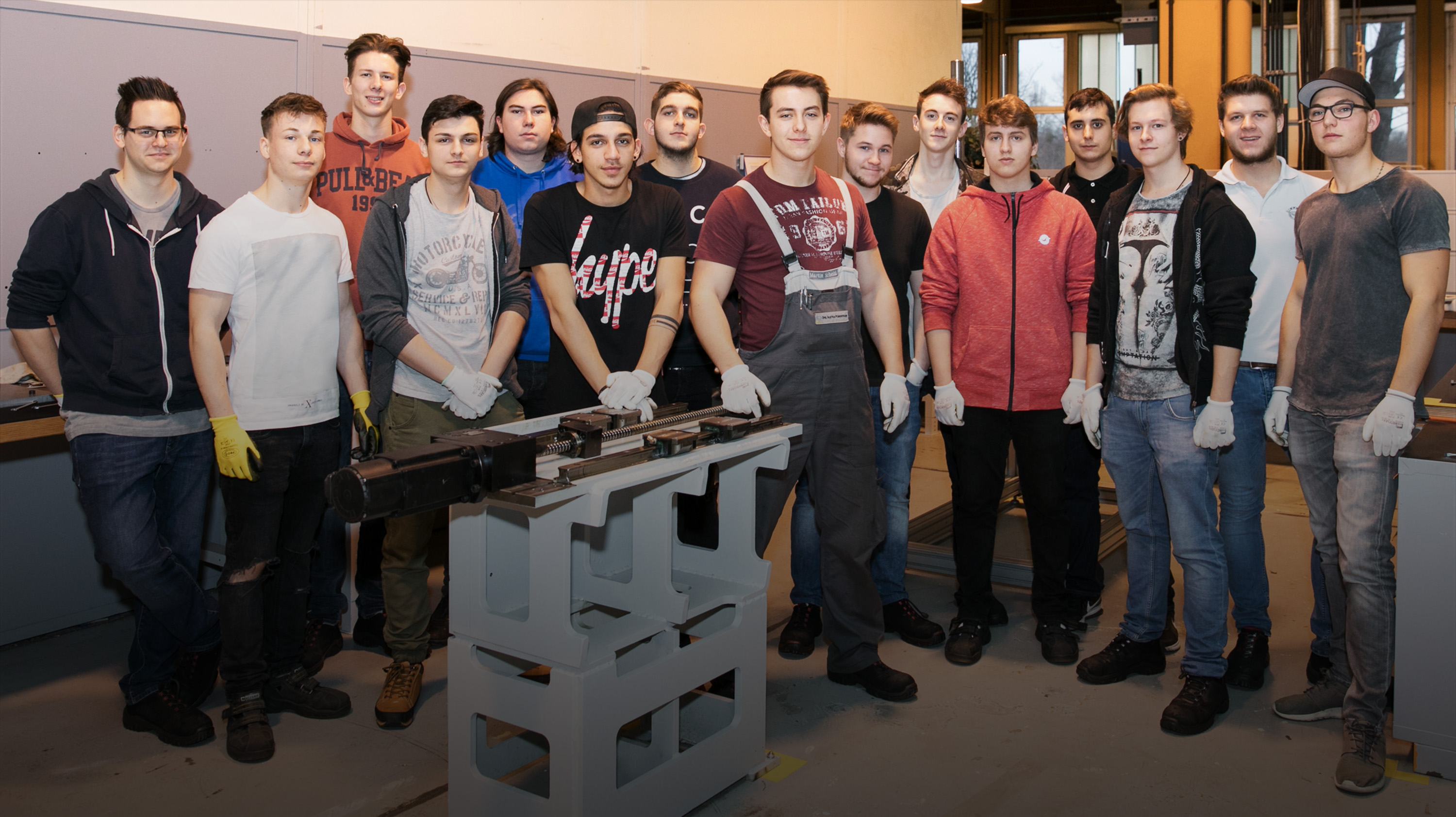 - Die Lehrlinge vor ihrer Mechanik-Ausbildung (v.l.n.r.): Andreas Kautz, Marvin Zügner, Marco Nekvasil, Lazar Mijatovic, Sebastian Schmid, Tobias Bayyigit, Daniel Weisgram, Martin Scheitl, Michael Pöchgraber, Mario Eisenmagen, Daniel Kober, Laurean Lungocea, Kevin Gruber, Thomas Kriegl, Lukas Haas.