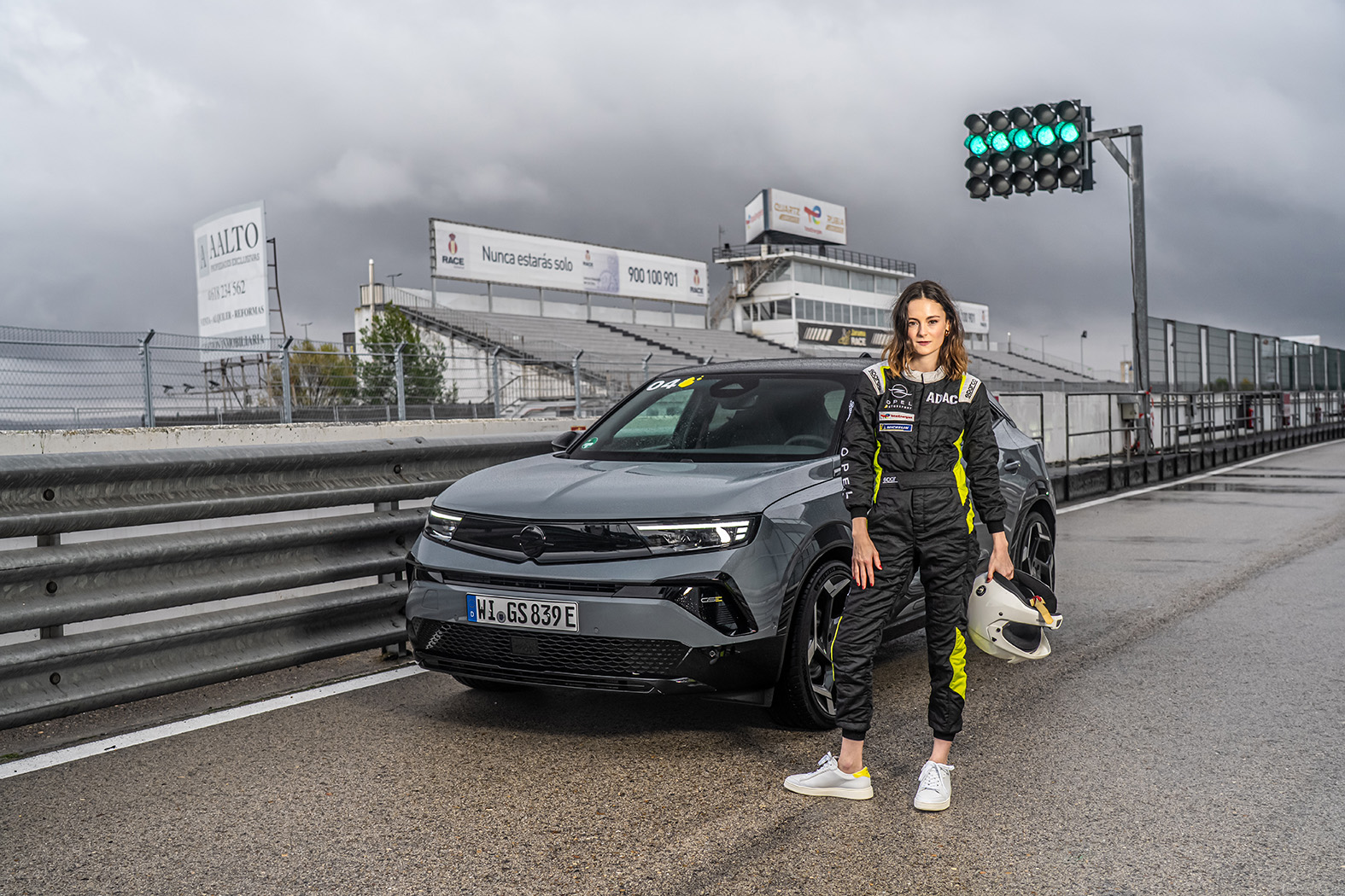 Kühl fegt der Wind über den Asphalt von Jarama. Eine Strecke, auf der einst Lauda, Hunt und Fittipaldi um Zehntelsekunden kämpften. Heute sitzt Lea van Acken auf dem Beifahrersitz des Mokka GSE – Helm festgezurrt, Blick nach vorn. Ein elektrischer Sprint durch die Kurven. Kein Ansaugheulen, kein Zylindertakten – 345 Newtonmeter Drehmoment sorgen für eine unmittelbare Beschleunigung, die sie später als „wahnsinnig stark und gleichzeitig leicht und frei“ beschreibt.