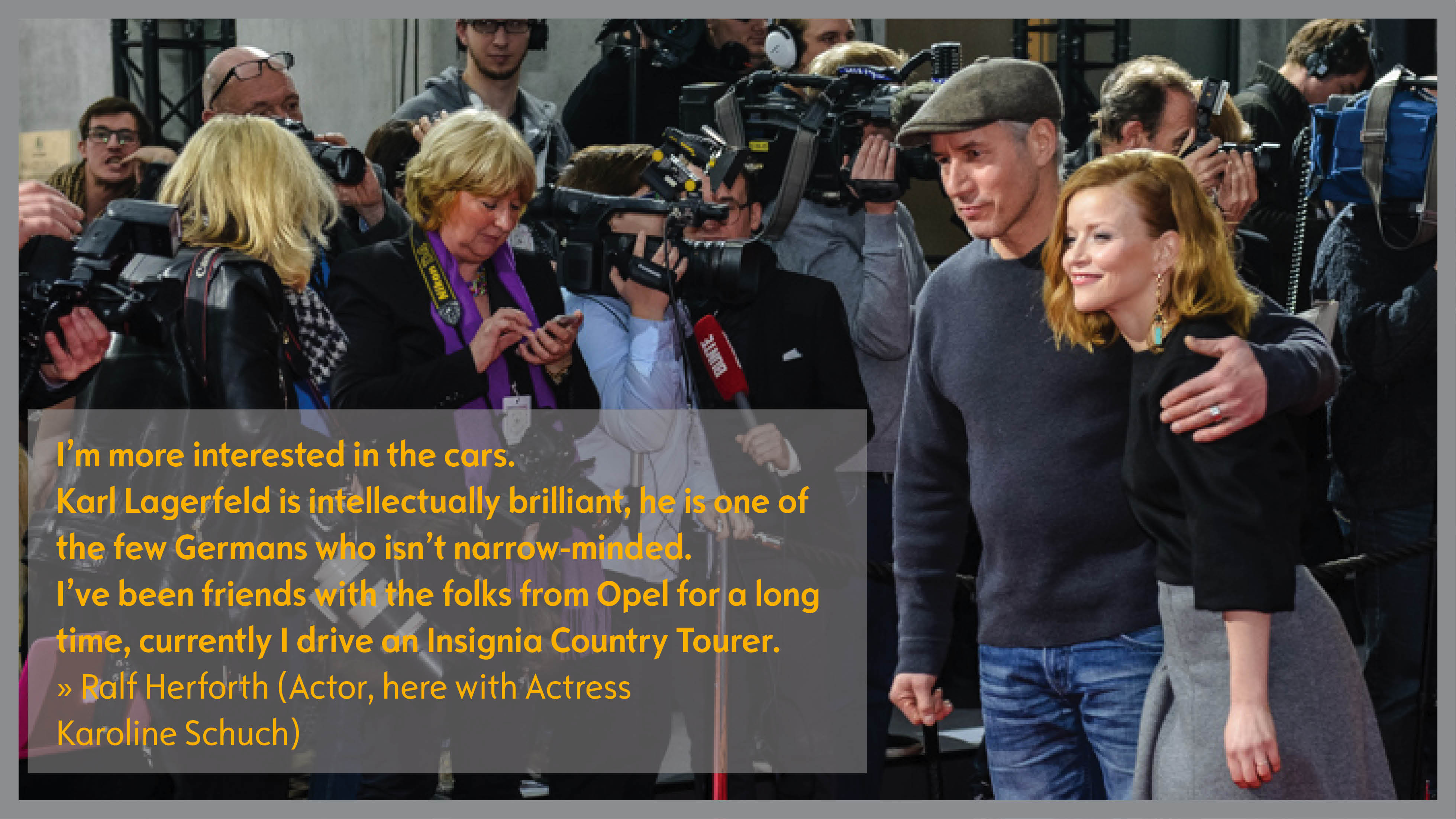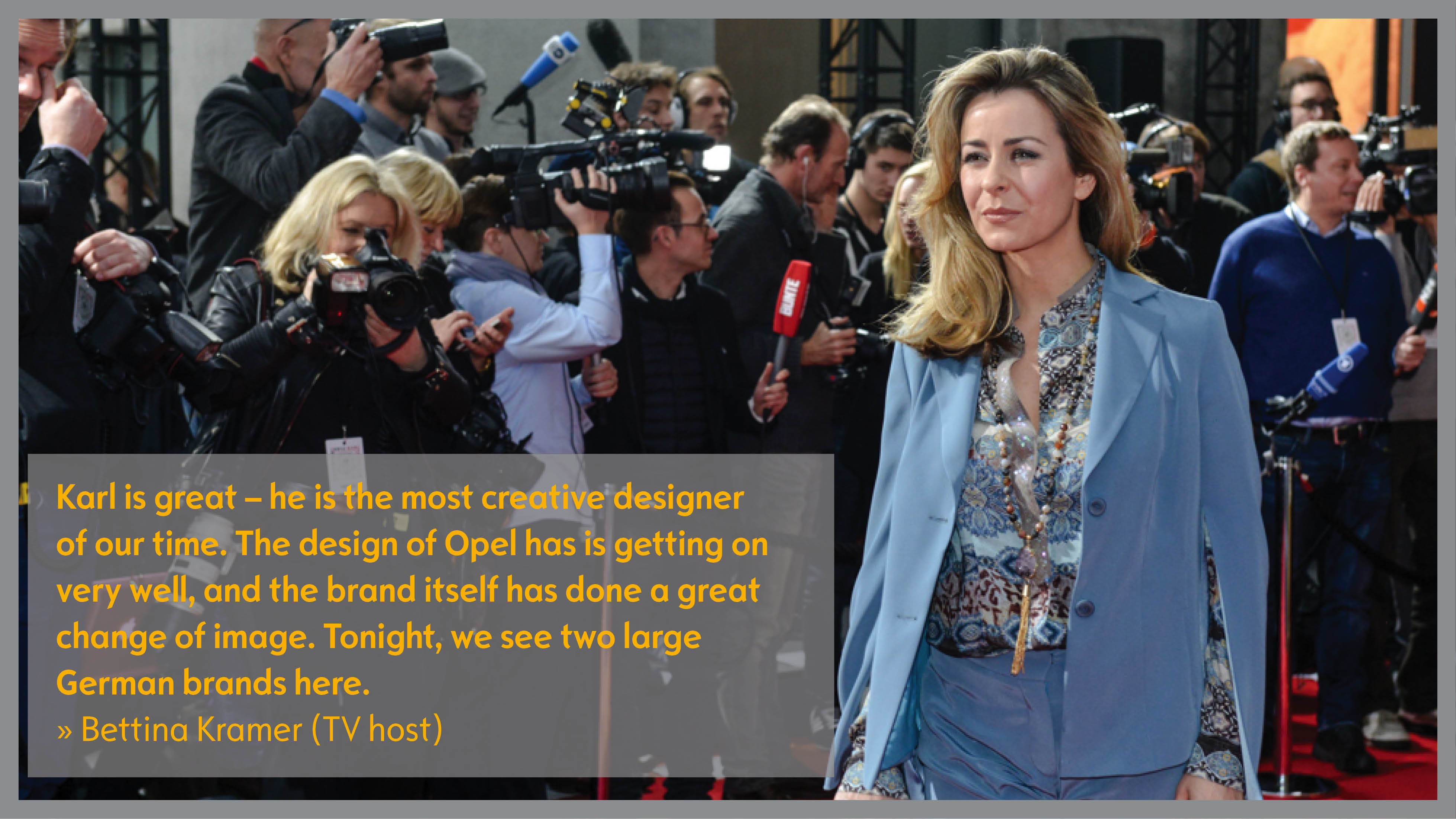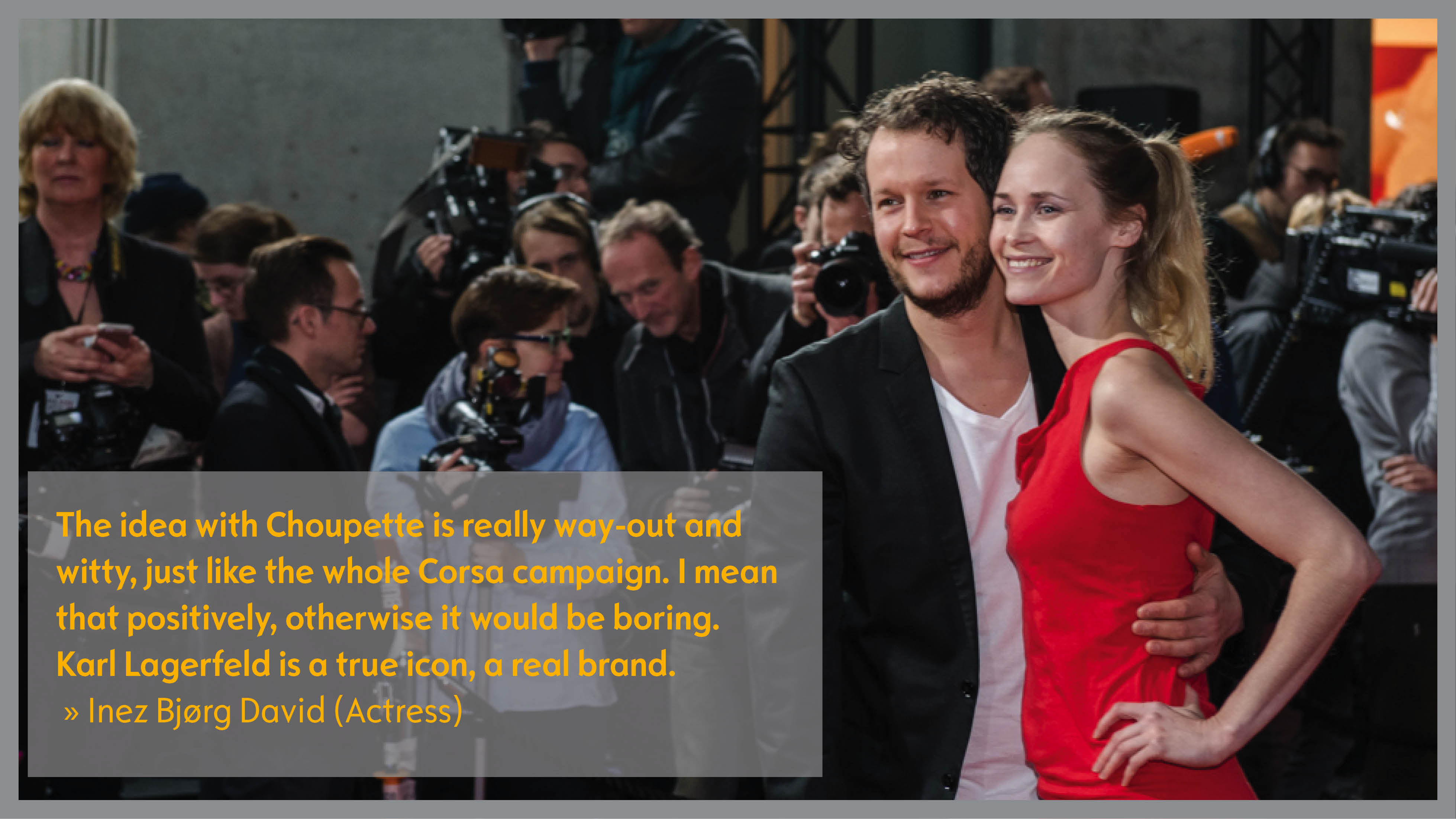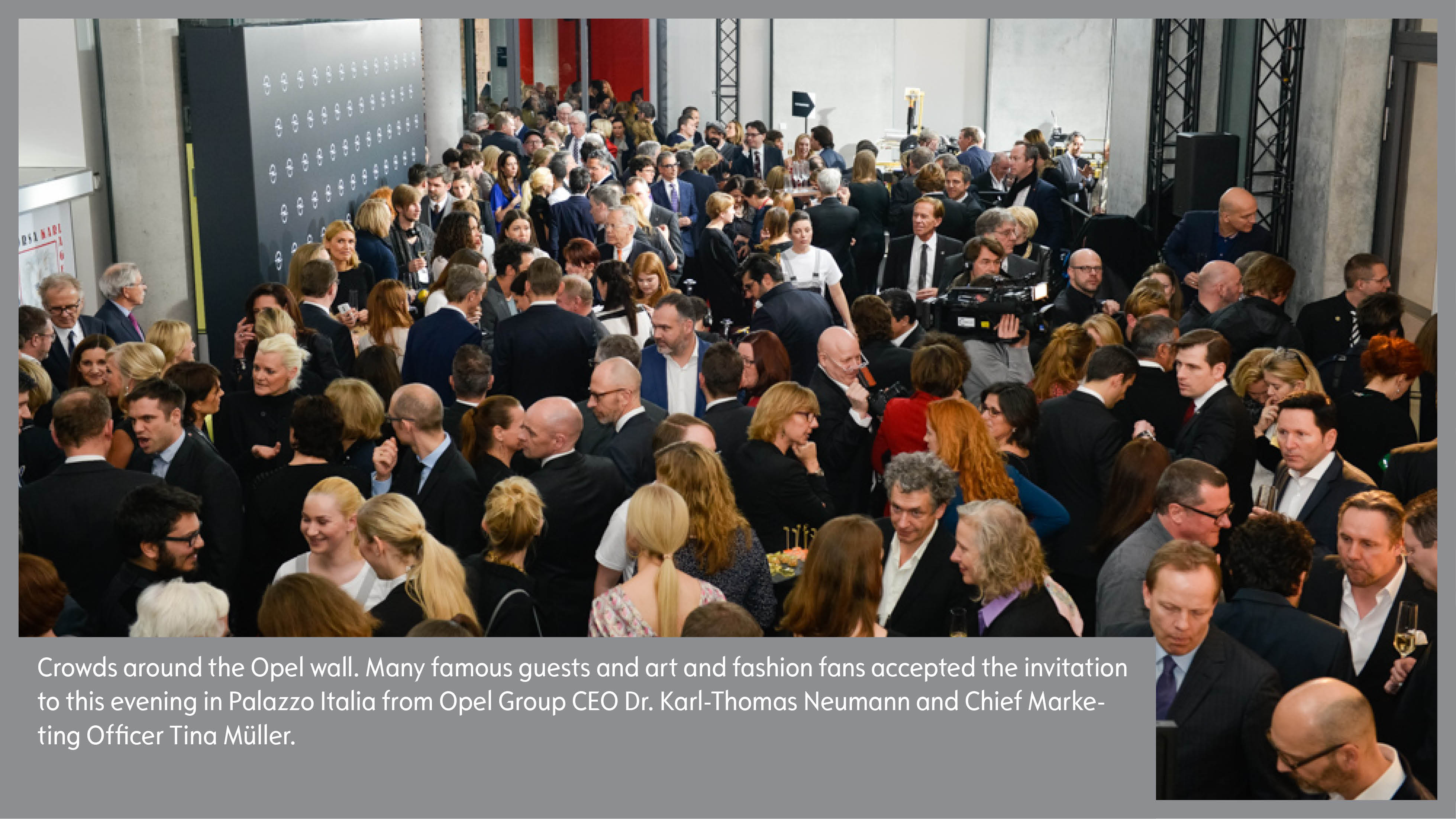 February 3, 2015. Berlin, Unter den Linden. Throngs of photographers, camera teams and reporters crowded around the entry to the Palazzo Italia. The excitement was all because of the perhaps only German superstar with international celebrity status, Karl Lagerfeld, who held a vernissage to open the Opel exhibition “Corsa Karl and Choupette”. And when the master calls, the stars respond. Accompanied by a flurry of flashbulbs, Berlin’s in-crowd walked the red carpet to admire the new Corsa and the art dedicated to it. Show business giants like actors Oliver Mommsen, Ralph Herforth, Gesine Cukrowski, Ken Duken, Jasmin Gerat, Christiane Paul, Benjamin Sadler, Fahri Yardim, Bettina Zimmermann, presenter Ruth Moschner, soccer vice world champion Christoph Metzelder, race car driver Lina van de Mars and German Federal Minister of Transport Alexander Dobrindt all came to the event.