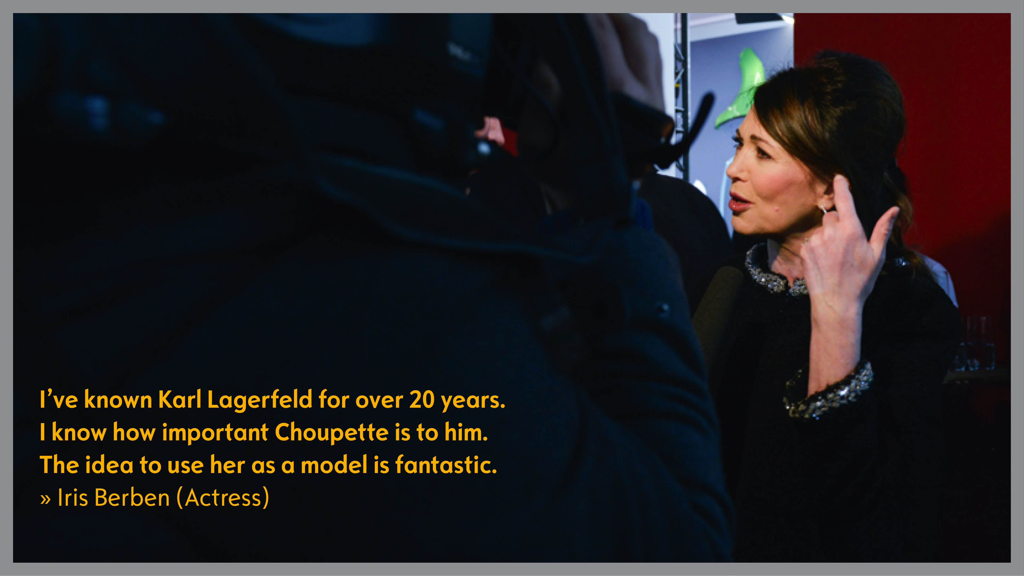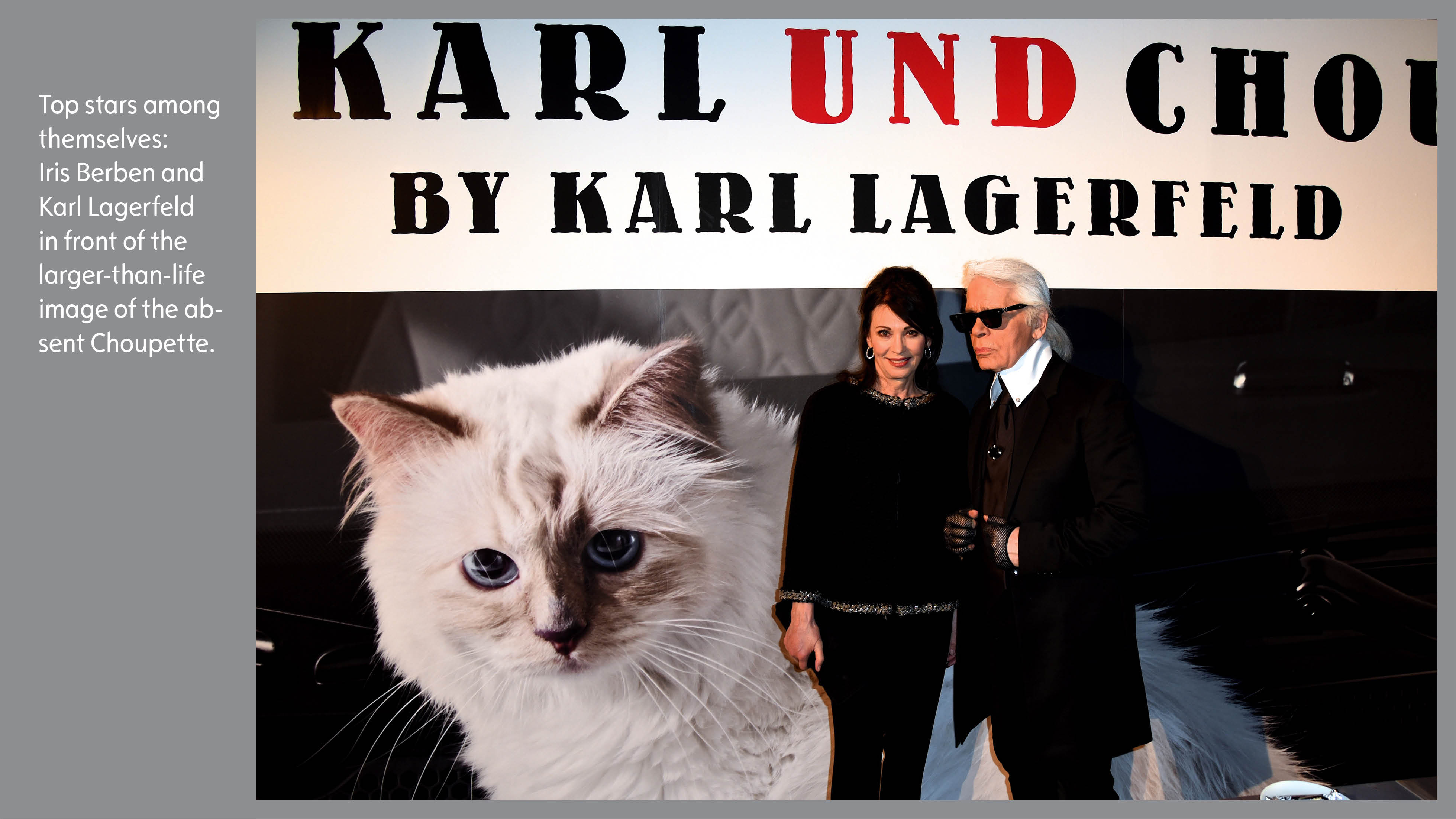 Karl Lagerfeld took all the commotion in stride. He knows it all too well. And that’s why he left the real star of the evening at home with her two maids. Because the three-and-a-half-year-old Choupette wouldn’t handle the excitement so well, said the master, excusing his purebred cat, which he just simply kept after a friend who was going away for three weeks asked him to look after it three years ago.