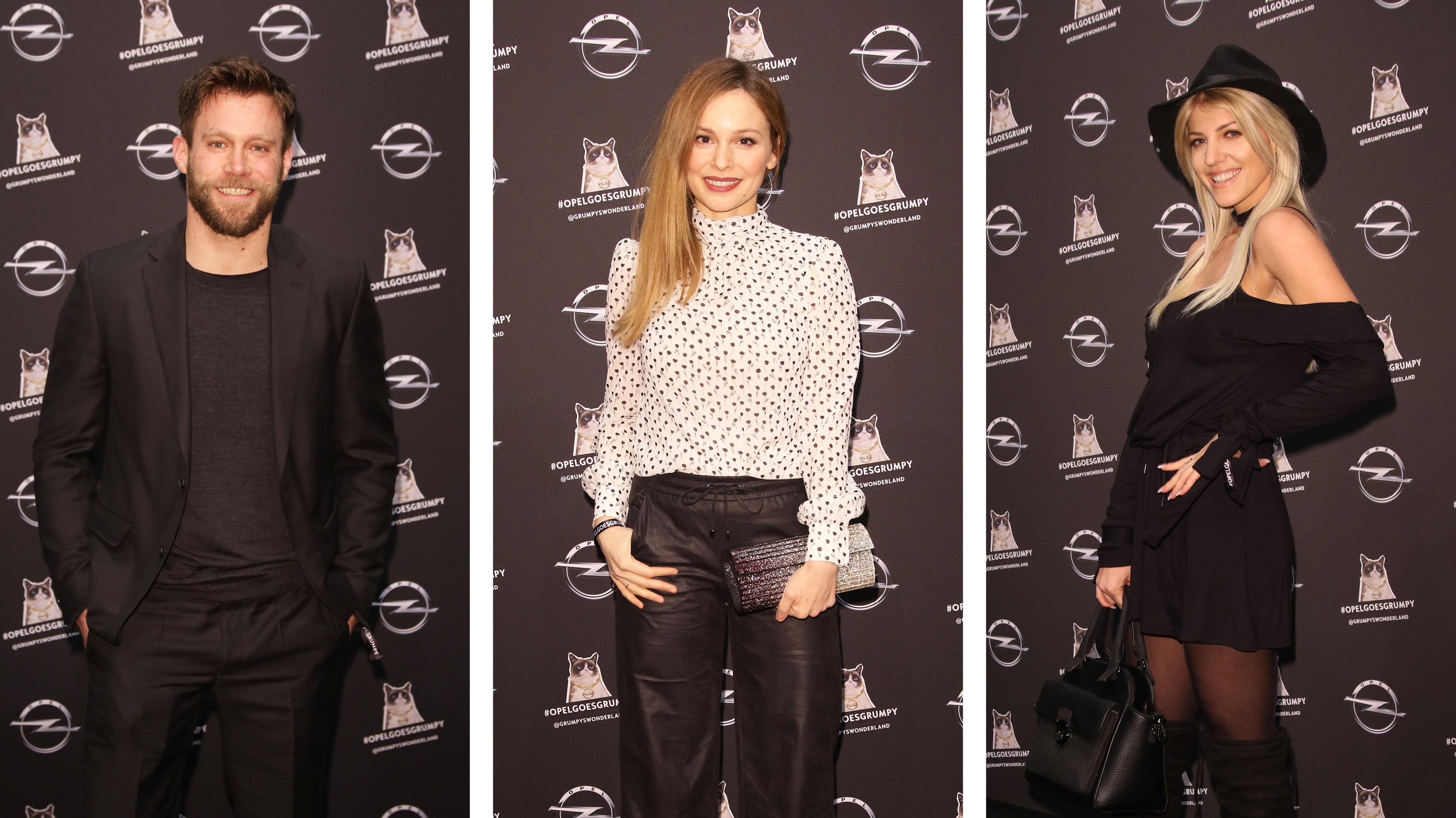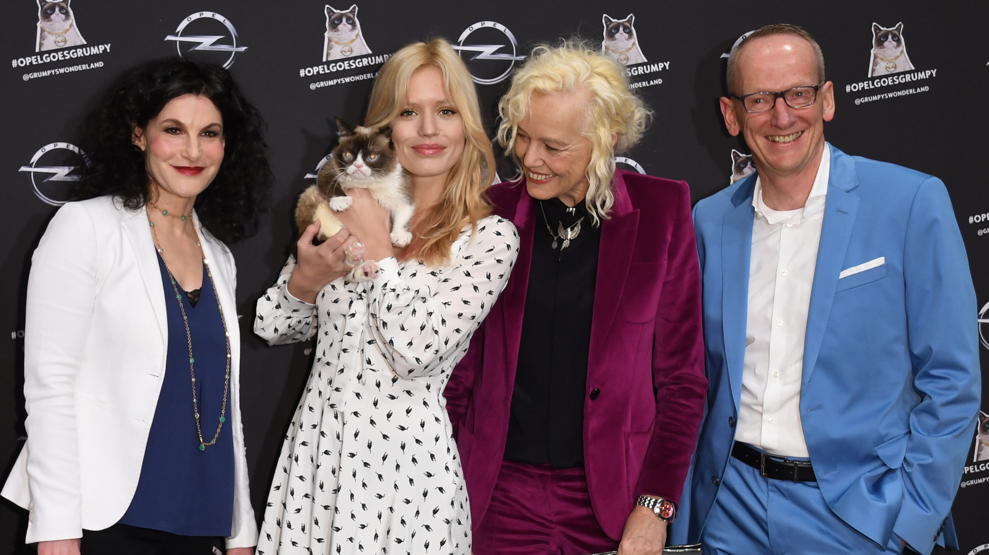 Die Weltpremiere des Crossland X ist gleichzeitig die Vernissage des Kalenders „Georgia & Grumpy – Not impressed by Wonderland“. Für diesen hat Starfotografin Ellen von Unwerth zwölf Kalendermotive mit Grumpy Cat und dem Supermodel Georgia May Jagger, Tochter von Rolling-Stones Gründer Mick Jagger, arrangiert. „Beim Shooting hätte ich mir gewünscht, dass Grumpy mal lacht – aber das hat leider nicht geklappt“, sagte Ellen von Unwerth. Das Ergebnis ist wohl gerade wegen des Nebeneinanders von mies gelaunter Katze, glamourösen Supermodel und edlen Fahrzeugen beeindruckend. So beeindruckend, dass die Promis für fünf Sekunden innehalten, als die mystisch-verträumten Motive an die Wände projiziert werden und die kalt-industrielle Sichtbeton-Atmosphäre des Kraftwerks mit Buntheit gefüllt ist.