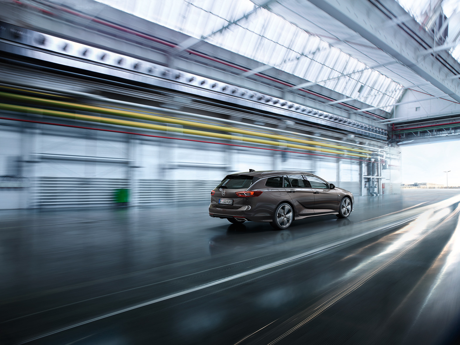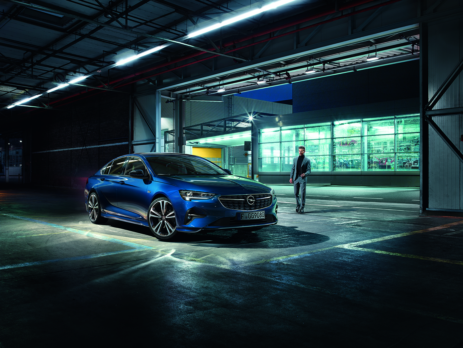 Blitzlichter streben zur Decke, Kabel winden sich über den Beton, eine Kamera inklusive angeschlossenem Laptop thront auf einem mächtigen Stativ: Werker, die im Takt Fahrzeuge montiert haben und gerade ihre Schicht beenden, recken neugierig ihre Köpfe hinüber zum Bandablauf, wo ein halbes Dutzend Besucher in orangefarbenen Westen ihr Equipment aufbauen. Es ist Tag 3 eines der aufwendigsten Shootings, die das Opel-Stammwerk in Rüsselsheim je gesehen hat. Eine Woche lang im Dezember wird der neue Insignia dort abgelichtet, wo er produziert wird: am Stammsitz, am Bandablauf, in der ehemaligen Produktionshalle K48, auf dem Werksgelände zwischen den Gebäuden. Aber auch im Design Center und im Testzentrum in Dudenhofen.