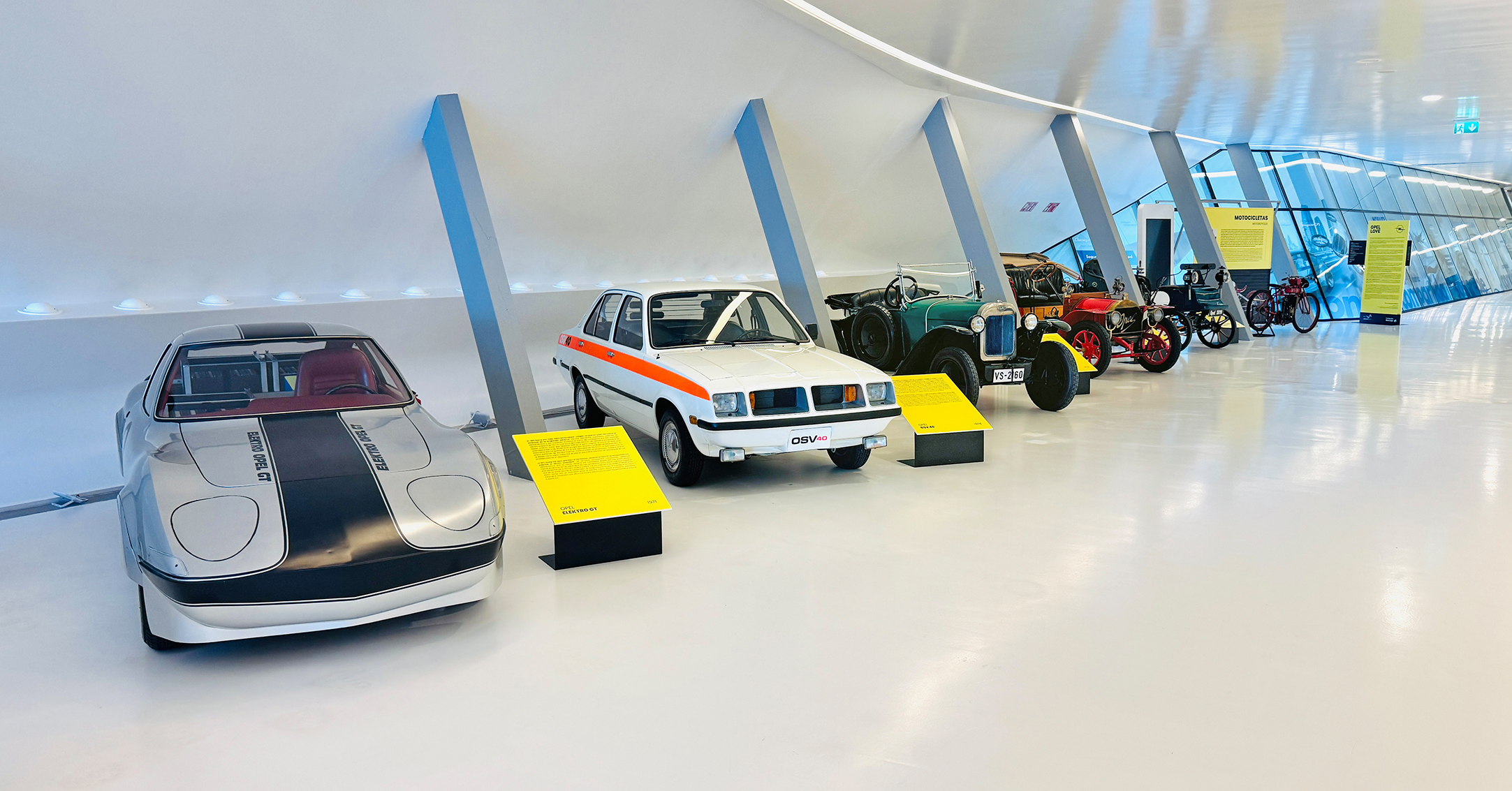 Von der Nähmaschine zum elektrischen Showcar: In den spektakulären Räumlichkeiten der Mobility City über dem Ebro entfaltet sich die Opel-Historie. Für alle, die es nicht nach Zaragoza geschafft haben, werfen wir einen Blick in die Ausstellung.