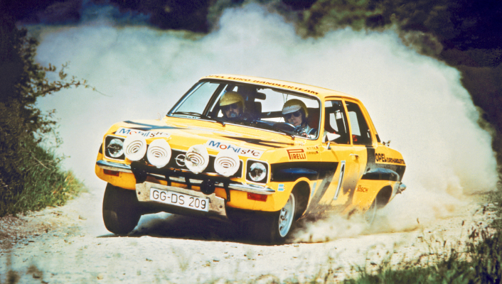 - Bulgarien-Rallye 1974: Der Ascona A 1,9 Liter S mit den Piloten Walter Röhrl und Jochen Berger.