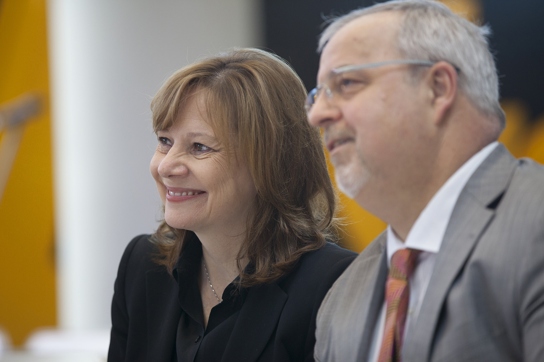 - With plans, investment commitments, and a smile in the Adam Opel Building: GM CEO Mary Barra with Management Board Member responsible for communications Johan Willems.