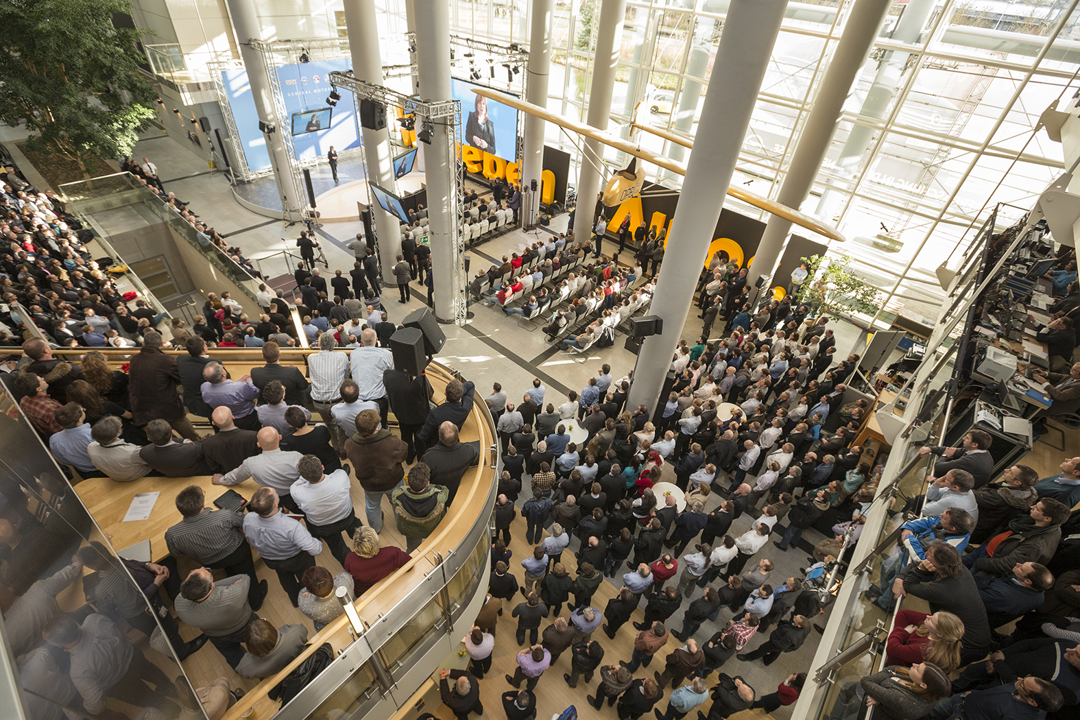 - When all of the GM locations worldwide tune in to in the Adam Opel Building at the start of the global employee broadcast, there is hardly a seat left.