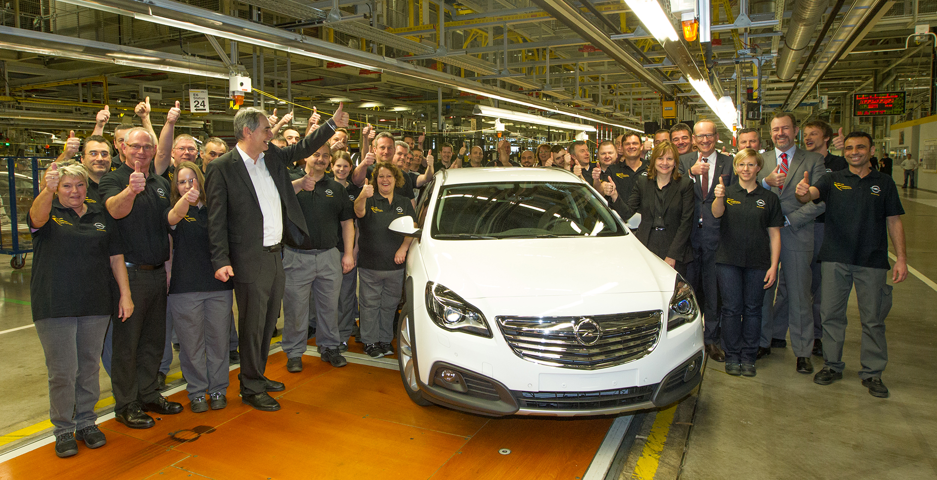 - Group photo with the flagship model: The bosses and the production workers give the new Insignia the thumbs up.
