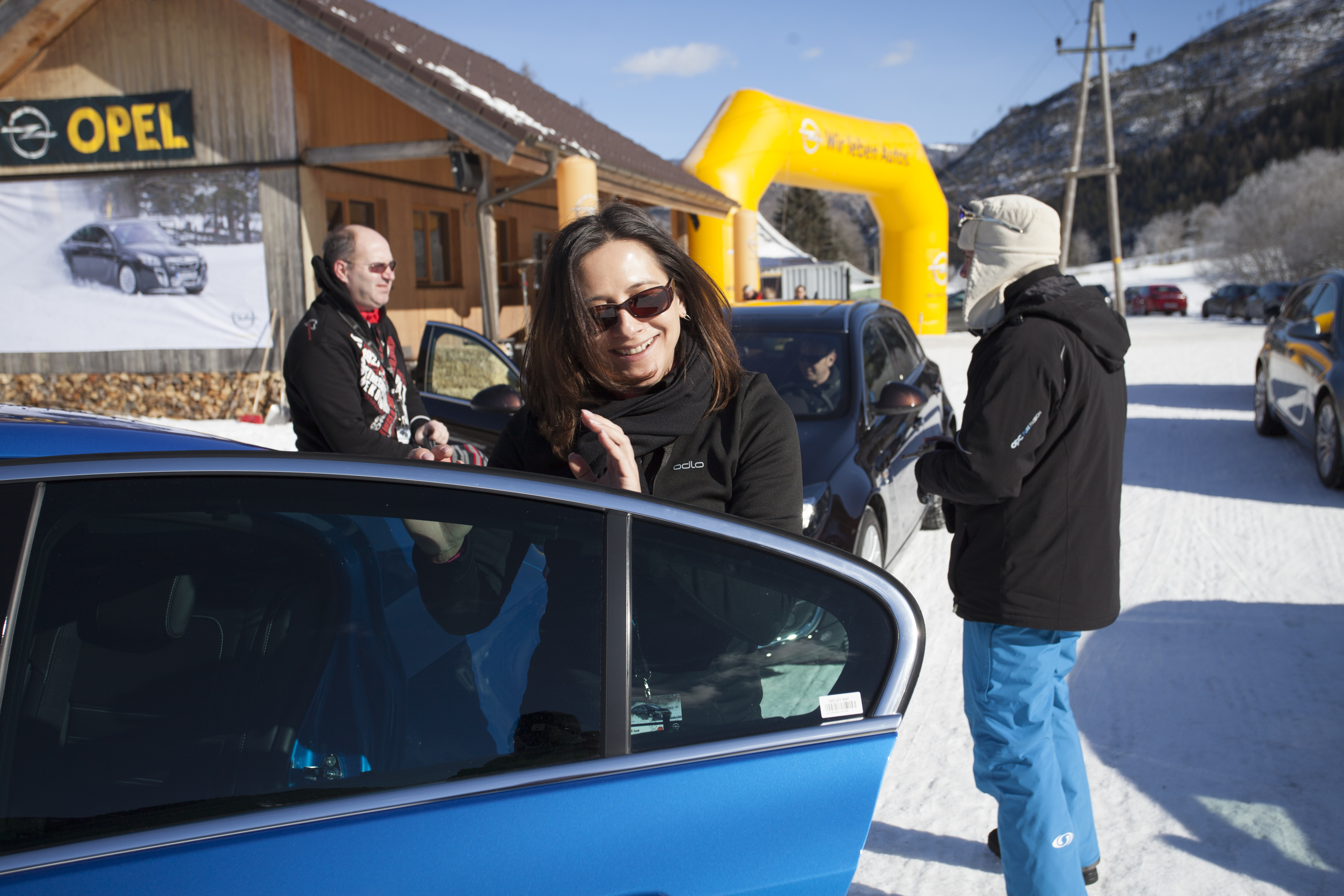 - Die drei haben gut lachen: Hans-Jürgen Enders, Matthias Schroll und Isabell Just (v.l.) freuen sich auf Winterzauber im OPC-blauen Insignia.