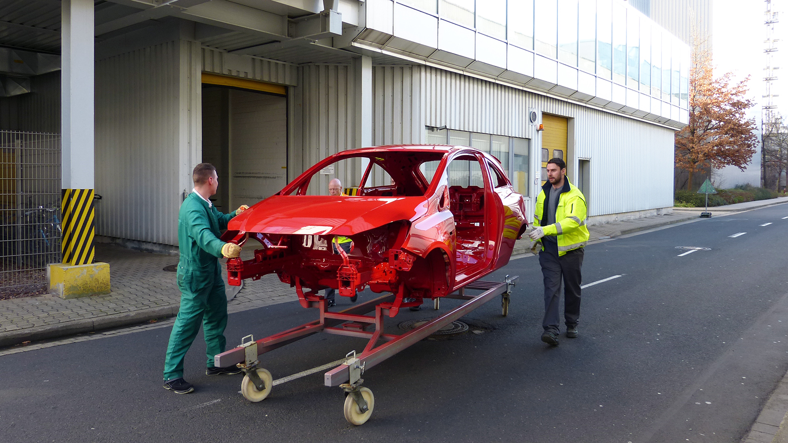 Weil die Blechteile korrodieren könnten, wurden alle Rohbauteile im Lack in Handarbeit phosphatiert und mit Klarlack überzogen. „Die sehen richtig edel aus“, freut sich der 44-Jährige. Vier Wochen hat es gedauert, um alle Teile in der Lackiererei entsprechend aufzuarbeiten. In der FEM wurde eine Karosse bis zum Takt 33 aufgebaut, dazu das passende Cockpit plus diverse Teile wie Griffe, Felgen, Spiegelkappen. Alles in verschiedenen Farben. Am Anfang der Endmontage wurde sie dann aus dem Prozess rausgenommen. Das bedurfte viel Vorbereitung, weil im Nachgang das Fehlen des Fahrzeugs in der Linie keine Störung auslösen durfte. Ab Mitte Januar gingen nach und nach drei Transporte mit insgesamt 150 Teilen nach Berlin.