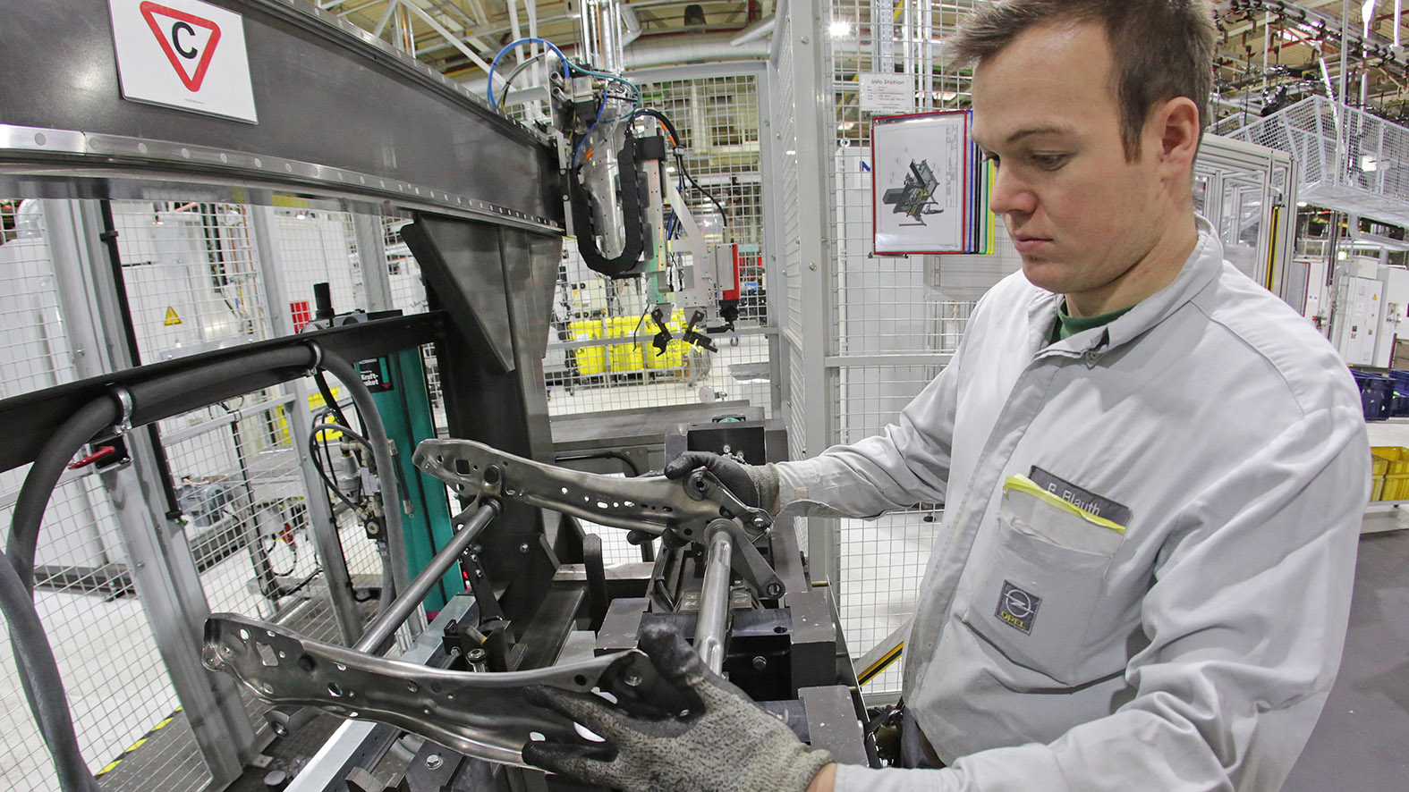 Seat manufacturing: Patrick Blauth at his individual workstation.