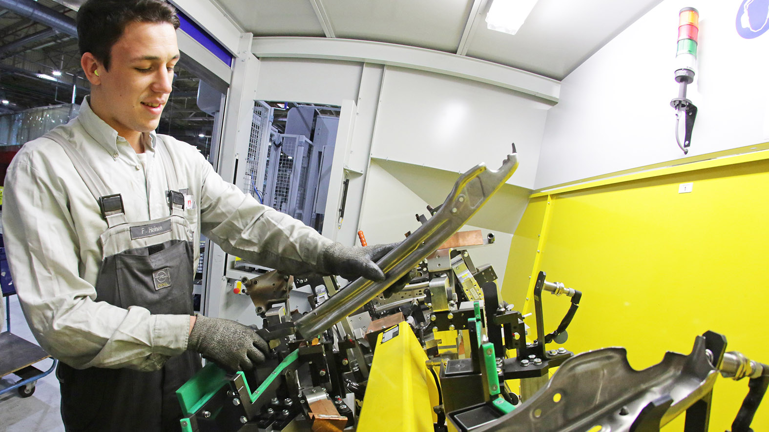 Despite his young age of just 24, Hans-Sebastian Wilhelm at the Kaiserslautern production facility has a lot of experience. The trained industrial mechanic has already worked in front wheel mount construction and maintenance, among other areas. He volunteered to work in the new seat production operation in production hall K20. “What attracted me was the fact that you really get to see the entire product being created, from the raw sheet metal right through to the finished seat,” he says.