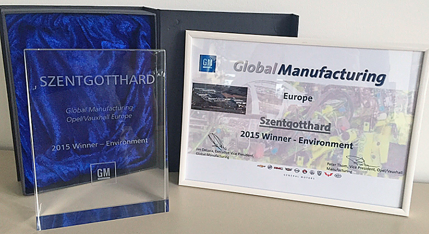 Az így elért 9%-os termékegységre vetített megtakarítás volt az a kiemelkedő eredmény, amiért 2015-ben – a Globális Gyártási Díj alapításának évében elsőként – a GM a „Környezetvédelem” üzleti kategóriában az európai régióban vállalatunkat díjazta.
