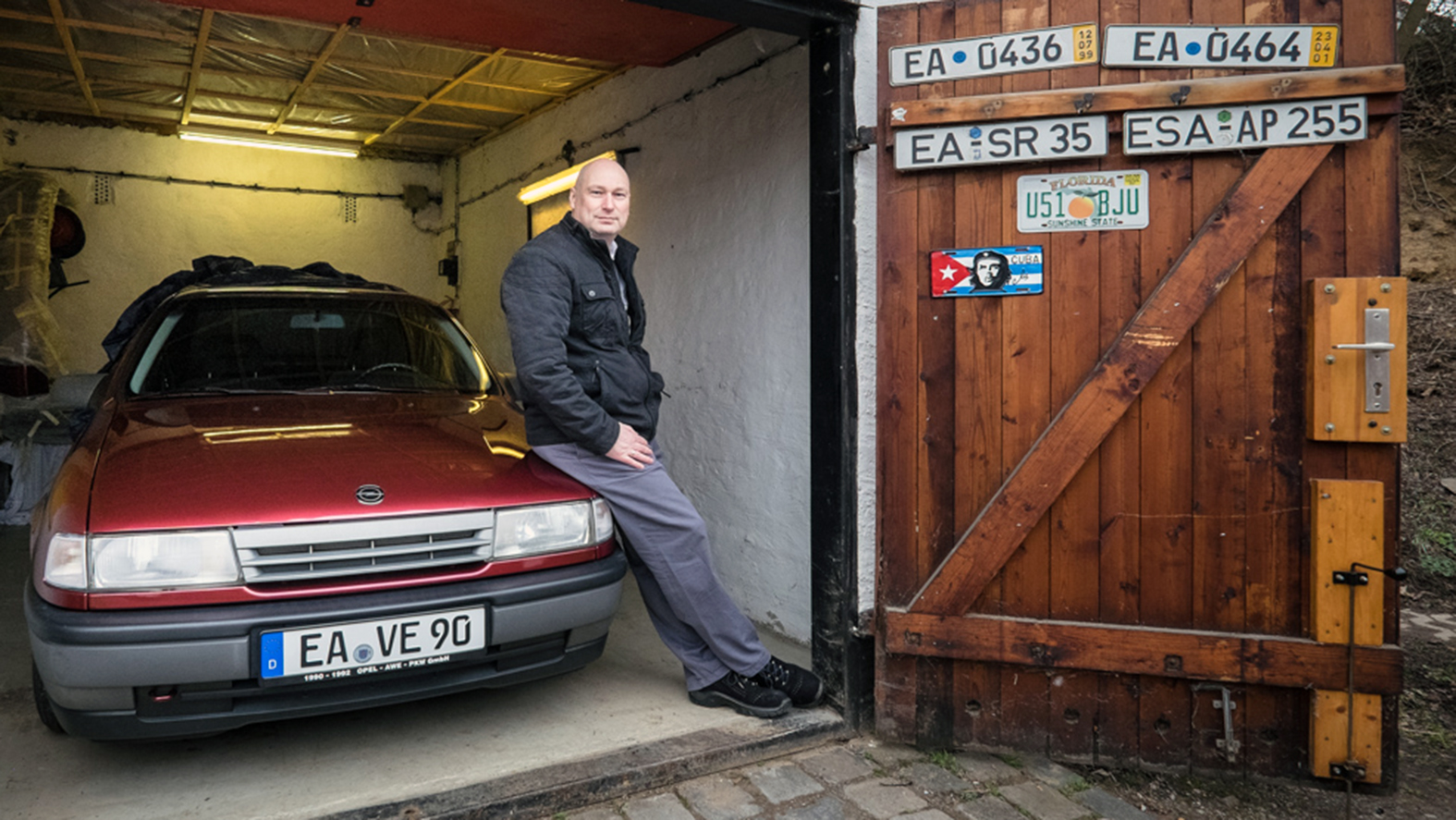 - Die Garage als Autogramm-Archiv: An der Tür prangen mehrere Kennzeichen – von Opel-Fahrzeugen, die der Eisenacher Reinhard Schäfer besaß, aber auch von Autos, mit denen sein Sohn auf Kuba und in Florida (USA) unterwegs war. Und wo so viel Wehmut und Würdigung zusammenkommen, da ist es nur folgerichtig, den Vectra A zu postieren. Schäfer hat den einst in Eisenach gebauten Wagen nach einer dreijährigen Recherche in Schwerin gefunden und gekauft.