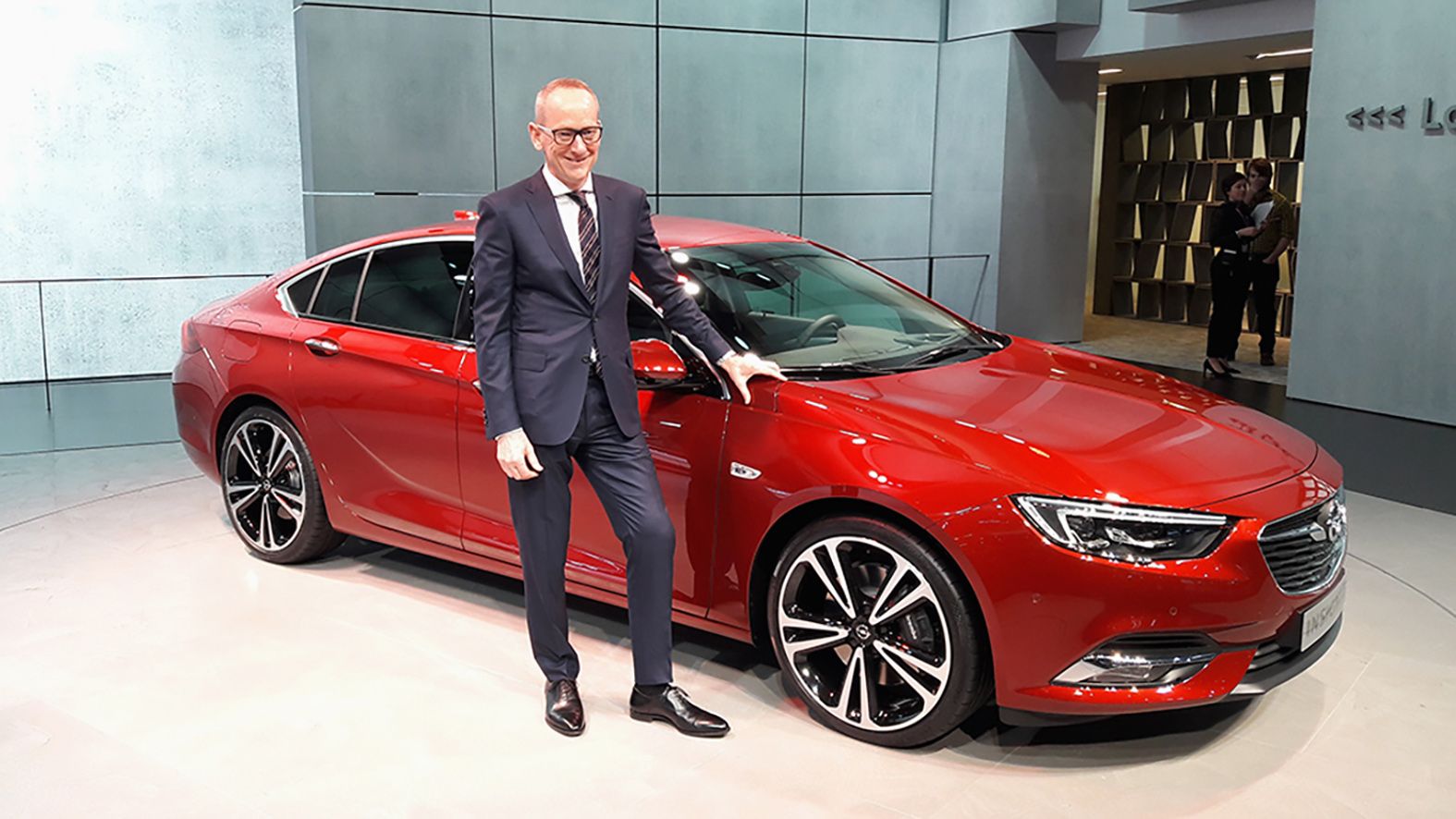 Dr. Karl-Thomas Neumann és a designfőnök, Mark Adams együtt leplezte le az ötajtós Grand Sport limuzint, illetve a tágas Insignia Sports Tourer kombit.