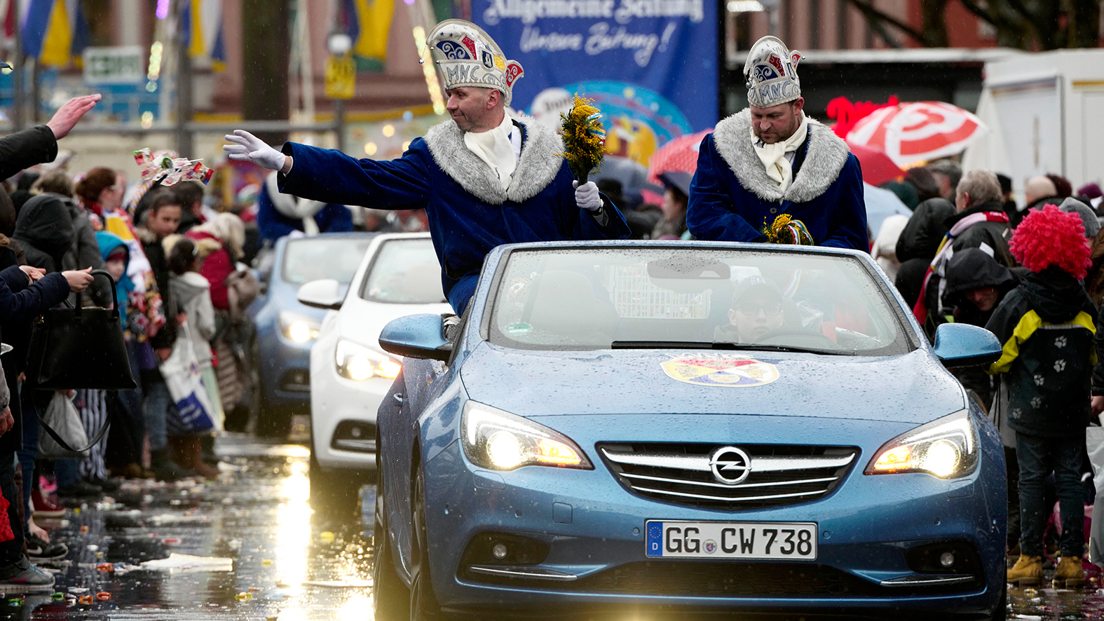 MCV, Helau: Die Dachorganisation der Mainzer Fassenacht gibt sich im Cabrio aus dem Opel-Motorpool die Ehre.