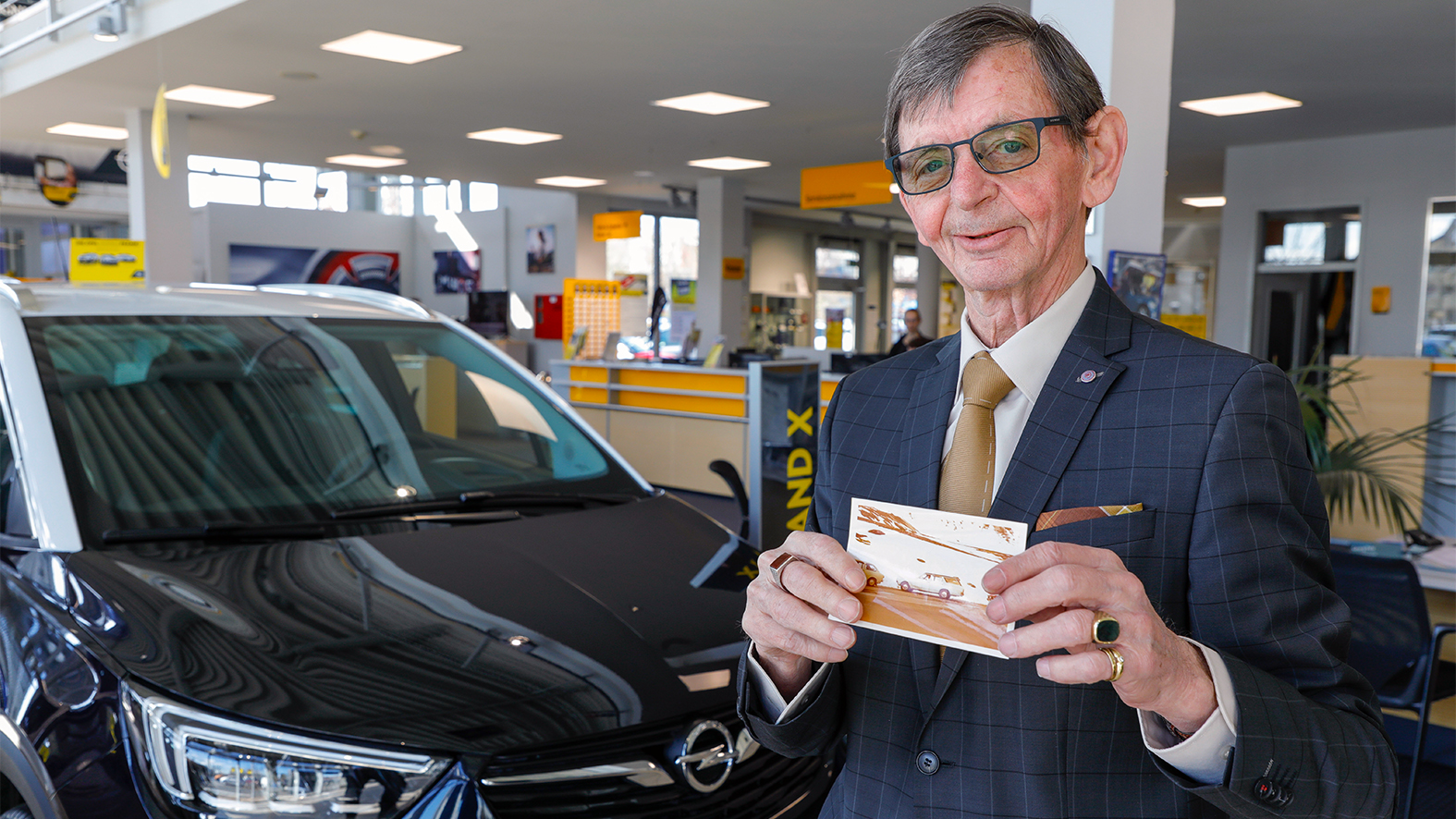1977 stieg er schließlich bei Auto Jacob ein. Bis heute hat er schätzungsweise mehr als 25.000 Autos verkauft – was ihn wahrscheinlich nicht nur zum ältesten, sondern vermutlich auch zum erfolgreichsten Opel-Verkäufer macht. „Jedes verkaufte Auto war ein Opel, jedes von Auto Jacob.“