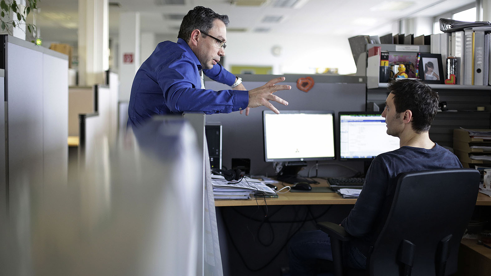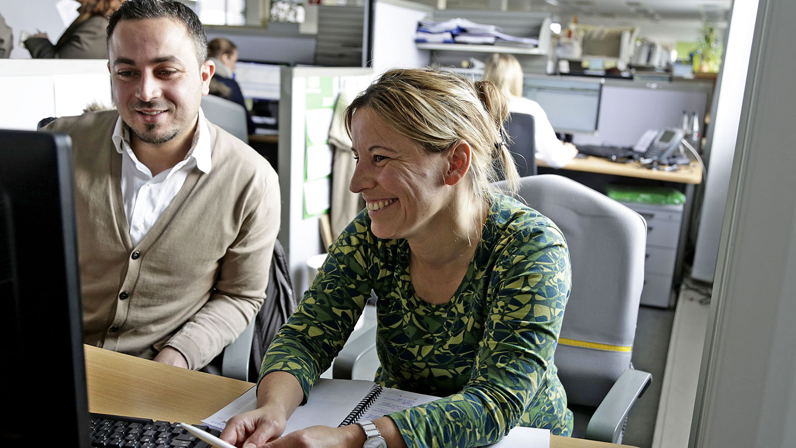Agent Imad Ayane talking to Quality Manager Agnes Görög.