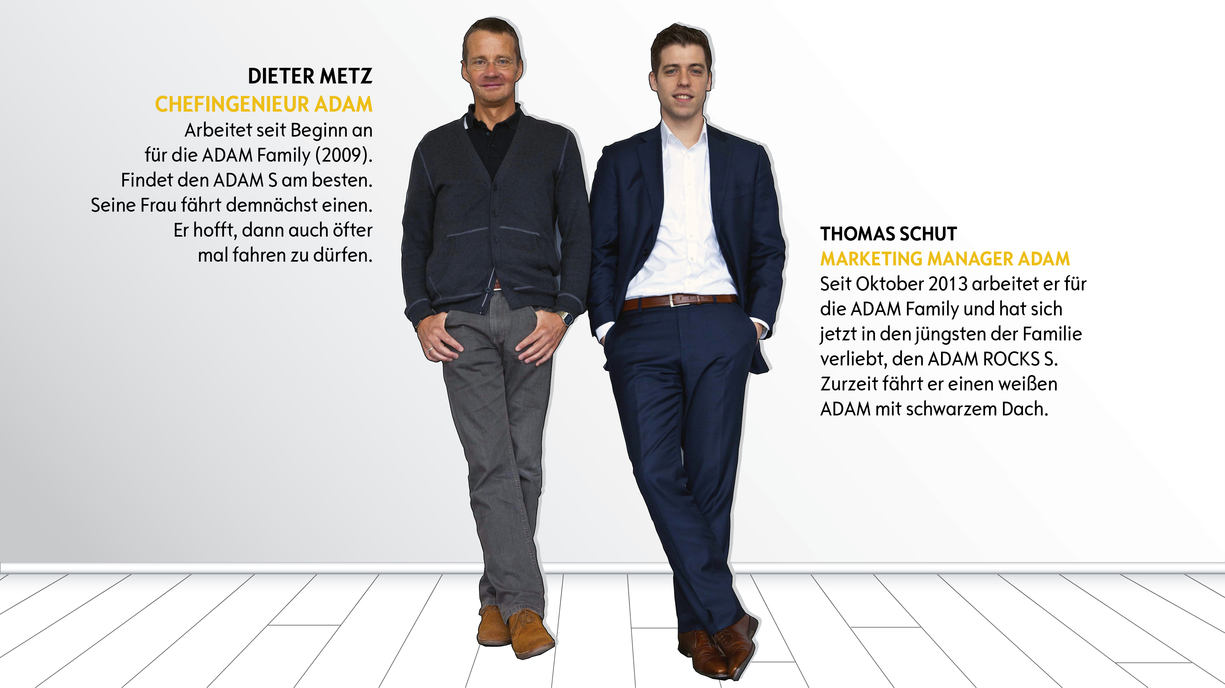 Es ist wieder passiert: Die ADAM Family hat Zuwachs bekommen. Nach ADAM, R1, R2, ROCKS, S und OpenAir ist ein weiteres Mitglied hinzugekommen: der ADAM ROCKS S. Am 16. April feiert er Geburtstag auf der Amsterdam International Motorshow (AutoRAI). Dieter Metz, Chefingenieur ADAM, und Thomas Schut, Marketing Manager, sind wahre Genealogen, wenn es um den ADAM geht. Sie kennen die Familie schon lange und sehr genau und geben einen Einblick in die Eigenschaften der einzelnen Mitglieder.