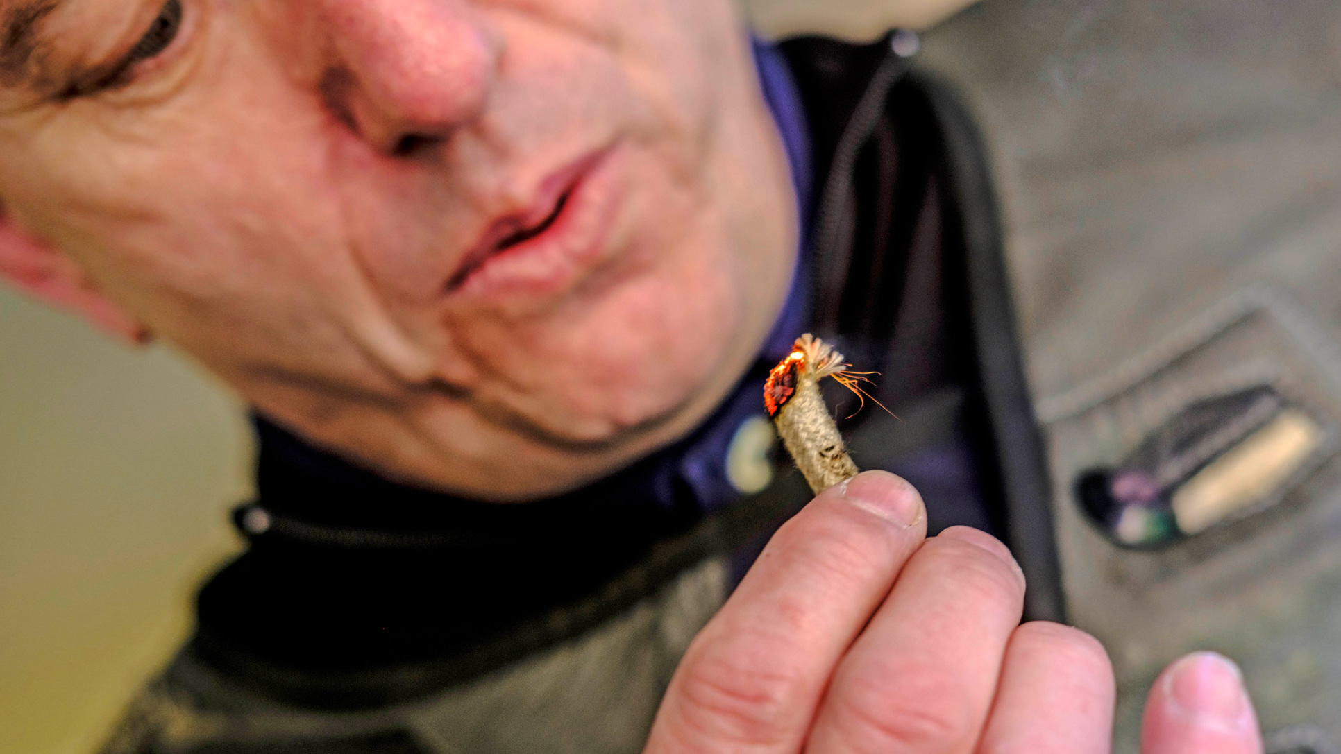 Ein Sonntagmorgen am Schießstand der Tell Haßloch. In einer speziellen Sportschützenkleidung gekleidet, stopft Walter Massing mit einem Ladestock Schwarzpulver, Leinenpflaster und eine Bleikugel in einen historischen Vorderlader. Für den Fotografen der Opel Post bedient der Sportschütze ein Vorderladergewehr mit Luntenmechanismus. Es in Aktion zu erleben, ist eine Augenweide und gibt ihm die Gelegenheit zu erklären, woher die Redewendung „Lunte riechen“ kommt: „Glimmt die Luntenschnur, verströmt sie erst einmal einen unverwechselbaren Duft, ehe es zum großen Knall kommt.“