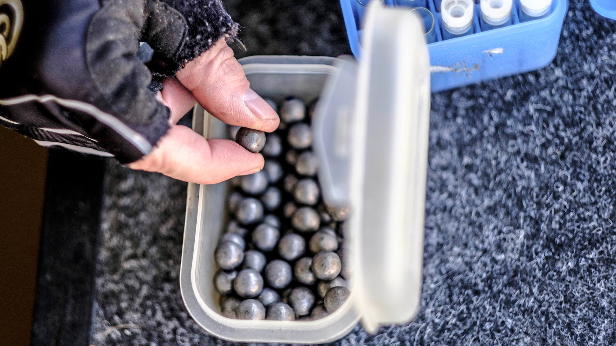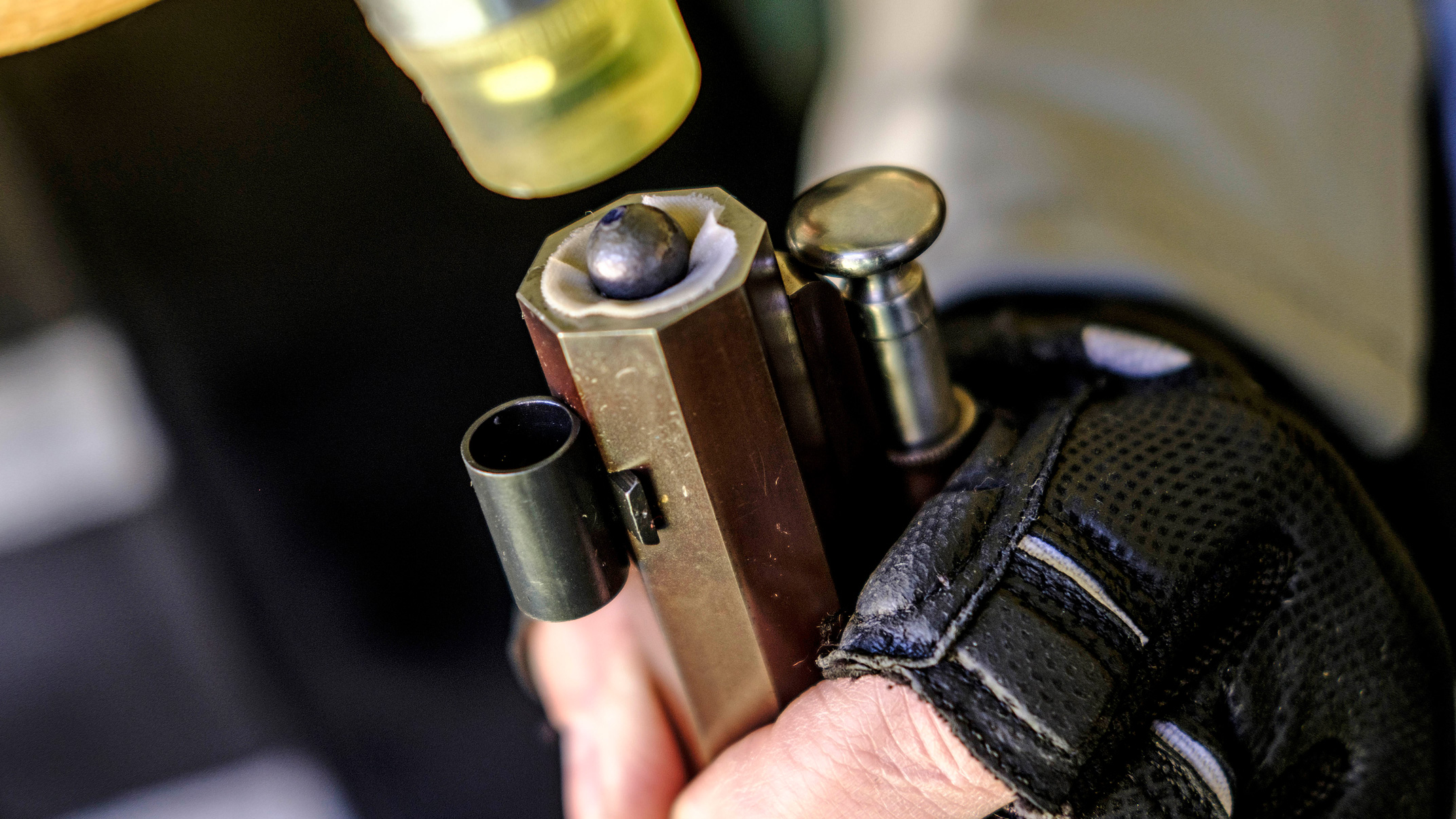 Volle Ladung Thomas Lache beim „Stopfen“, dem wesentlichen Merkmal des Vorderladerschießens. Für ein möglichst klares Zielbild verwendet er eine spezielle Brille.