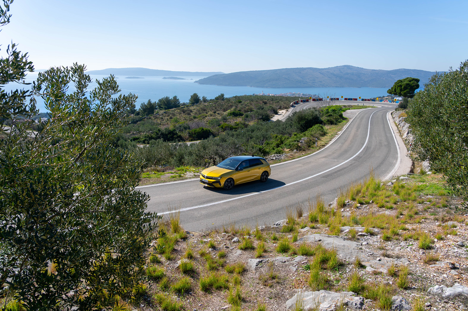 Two days, three routes, one destination: experience the new Astra. The routes start at the Marina Kaštela. From here journalists can take winding inland roads or the route along the coast to Šibenik. During the day, the Astra shows its versatility, at night its outstanding lights. The combination of briefing, test drives and night drives creates a programme that makes technology tangible.