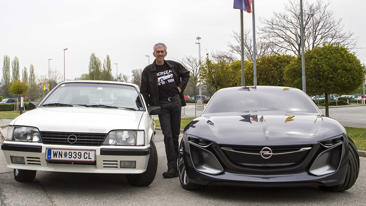 - Der stolze Besitzer Michael Kremser eines Opel Monza freut sich über den Vergleich mit der Zukunftsvision.