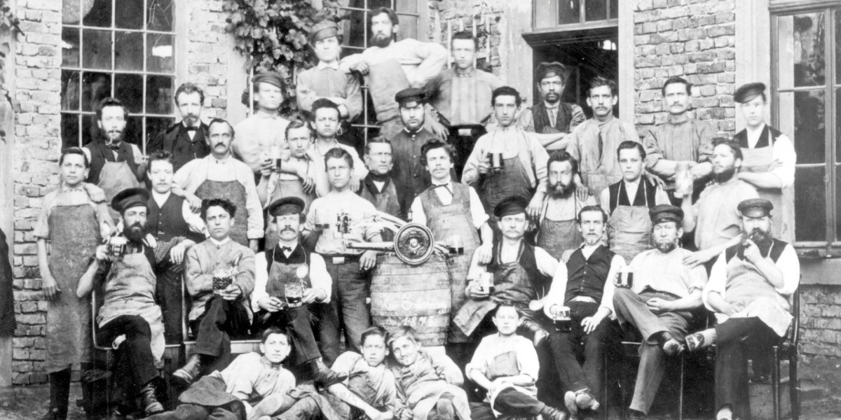 - Two employees counted the sewing machine workshop in its beginnings, ten years later, there were already 100. The group picture of the sewing machine mechanics dates from the year 1875.