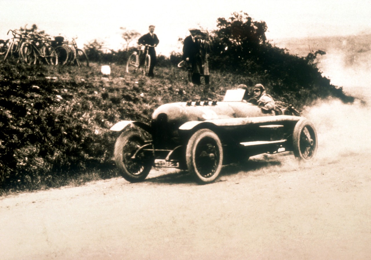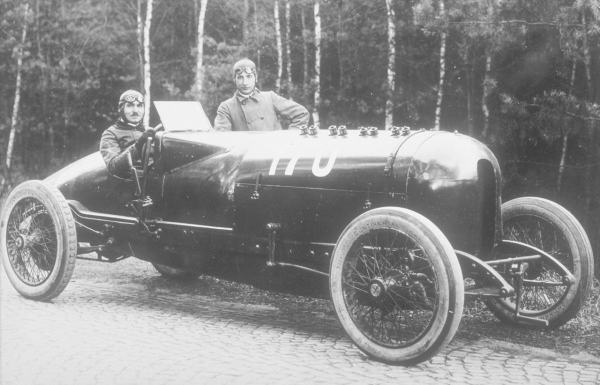 - Racing car 1913: This successful Grand Prix car already boasted technical highlights such as overhead camshafts with vertical-shaft drive and four valves per cylinder.