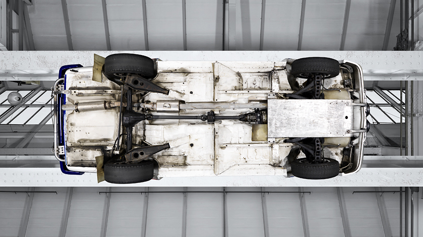 We were. The cars looked beautiful. As a photographer, I was particularly fascinated by how the cars were wrapped. Back then it was done in such a way as to enhance the shape of the car rather than covering it up. Once the photos had been taken and we were going through the results, it occurred to me that it would be really amazing to show the cars from underneath. Everyone thought I was joking at first. You should have seen Uwe Mertin’s face when he realized I was serious! You could see what everyone was thinking: “He’s really lost it now. What a crazy idea!”