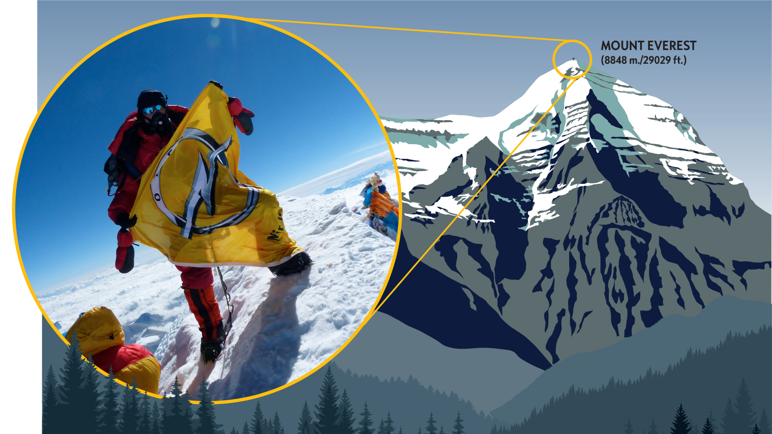 - The summit of Mount Everest: The group worked for two months so that they could enjoy this view.