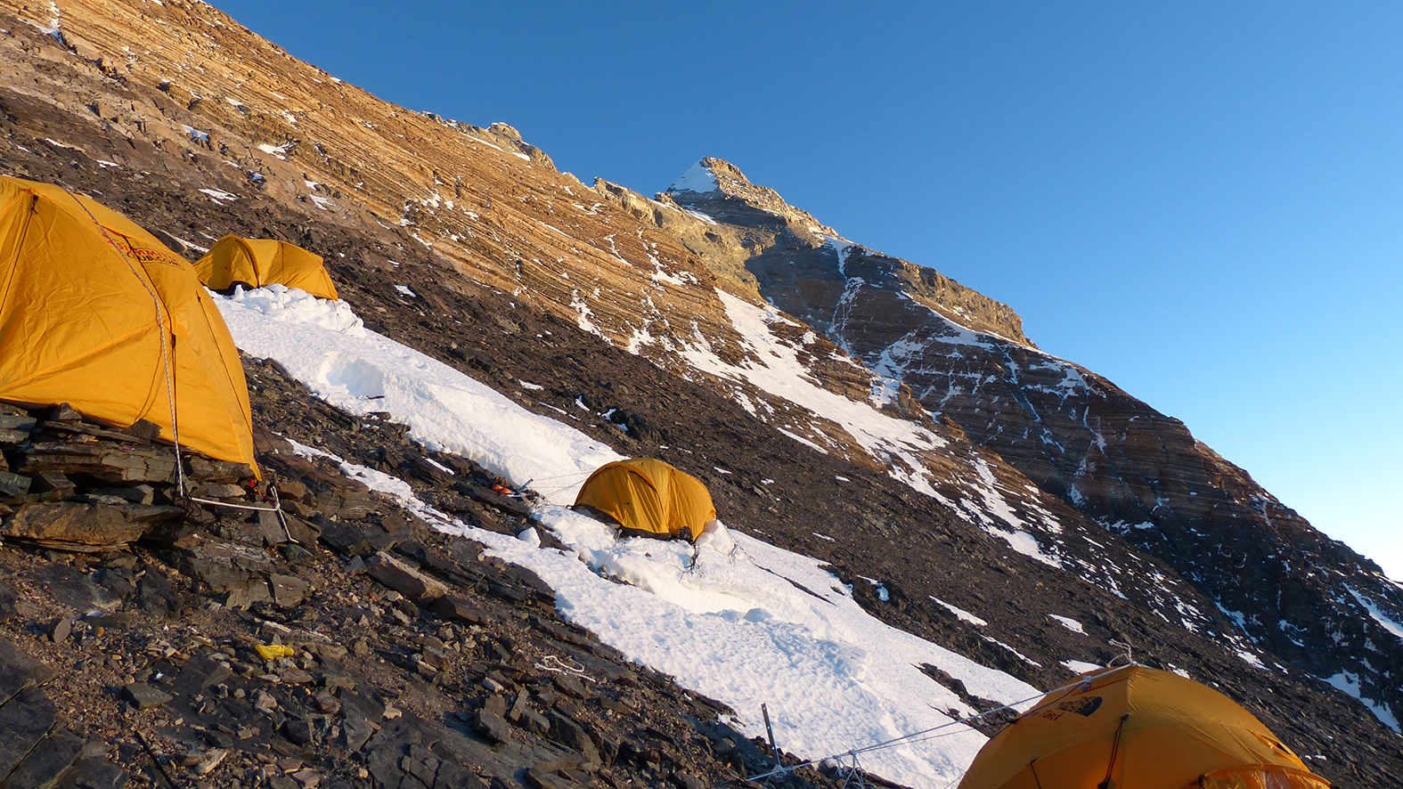 - The climbers painstakingly make their way to Station Camp 3, at 8,300 meters; it is their last pit stop. There is no level ground here on which to pitch their tents.