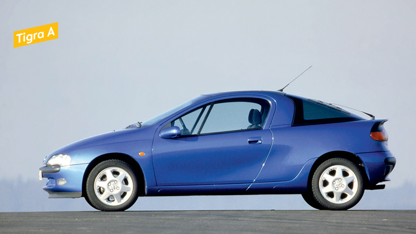 - Basierend auf dem Corsa B hat der japanische Opel-Designer Hideo Kodama die Gestalt des kompakten Sportcoupés Tigra entwickelt. Der 2+2-Sitzer wird anders als die Corsa-Limousine von ausgeprägten B-Säulen, einer Motorhaube mit markanten Sicken und einem kuppelförmigen Glasdach über dem Heck geprägt. „Bei einem Coupé zählen nicht nur die strengen Maßstäbe der reinen Vernunft“, heißt es im Begleittext des knapp vier Meter langen Zweitürers. „Hier sind Emotionen erlaubt, ja sogar ausdrücklich gewünscht.“ Das in Amerika entwickelte, getönte Sundym-Glas der Heckhaube senkt die Temperatur im Innenraum um vier bis fünf Grad, folgt also nicht nur ästhetischen Gesichtspunkten, sondern erfüllt auch jegliche Ansprüche an die Funktion. Der Innenraum ist variabel, was damals bei Coupés eine seltene Eigenschaft war. Hideo Kodama erklärt die Funktionalität: „Wer ein kleines Auto fährt, tut das wegen des günstigen Preises oder weil er in der Stadt nicht unnötig lang nach Parkplätzen suchen will. Dabei ist das Auto für ihn nicht nur ein attraktives Fortbewegungsmittel, das ihm unterwegs Fahrspaß bereiten kann, sondern auch ein Transportmittel. Damit nichts zu Hause bleiben muss, kann der Laderaum des Tigra dank der klappbaren Rückbanklehnen den Bedürfnissen angepasst werden.“ Beim Tigra hat Kodama aus diesem Grund weiche und harte Designelemente einander gegenübergestellt. Die sanften Rundungen stehen als Kontrapunkt zur ausgeprägten Keilform des Sportcoupés, die scharfen Sicken der Motorhaube korrespondieren mit den weichen Radien der Lufteinlassöffnungen im vorderen Stoßfänger. 1994 startete die Produktion des flinken Opel-Coupés, sie endete im Jahr 2001.