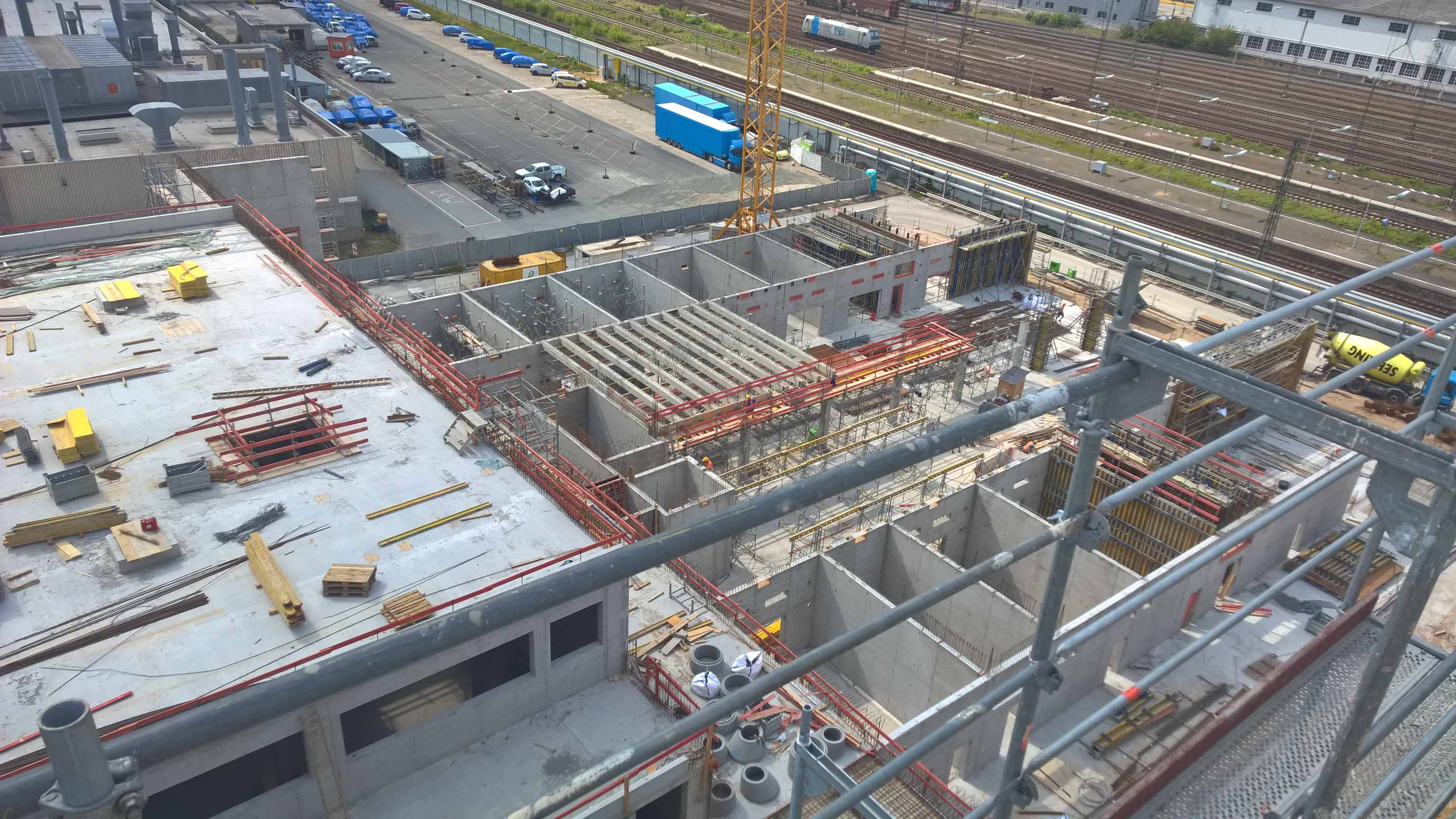Blick in den Rohbau: Hier im ersten Stock des siebengeschossigen Gebäudes wird künftig die Kantine zu finden sein.