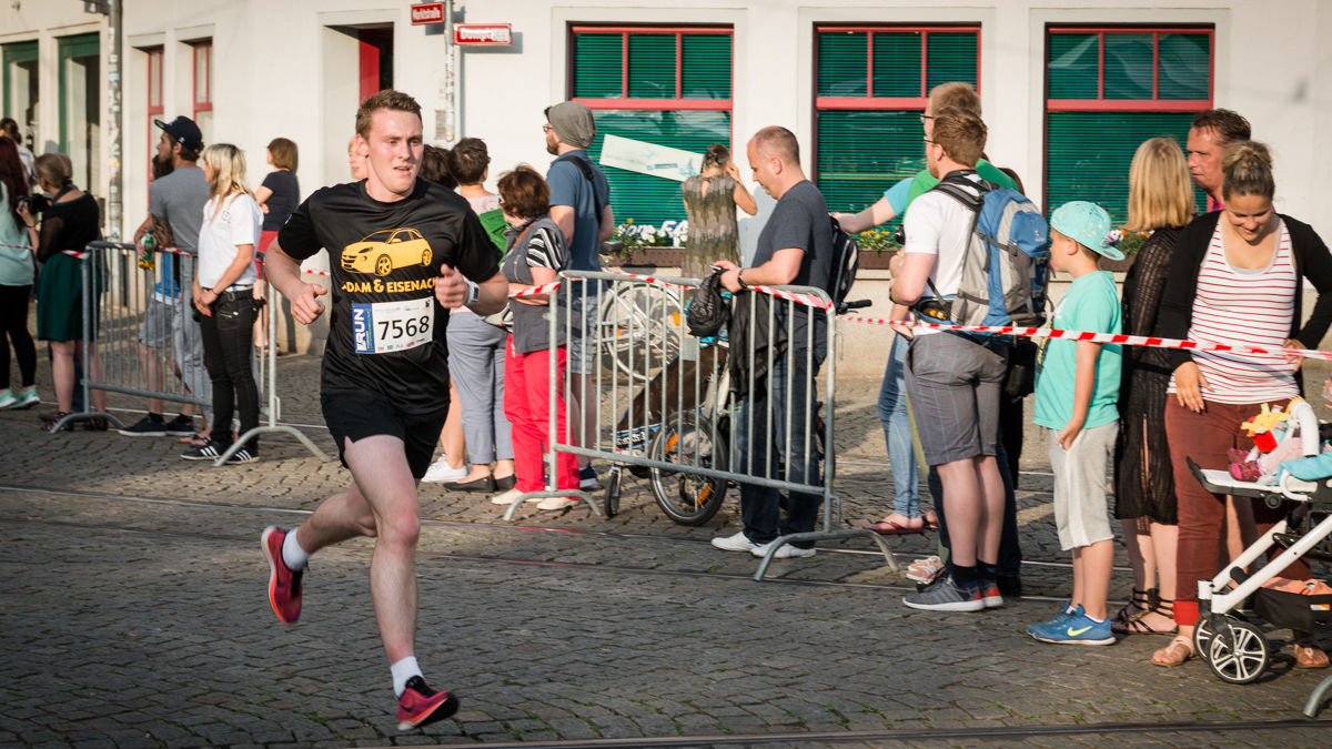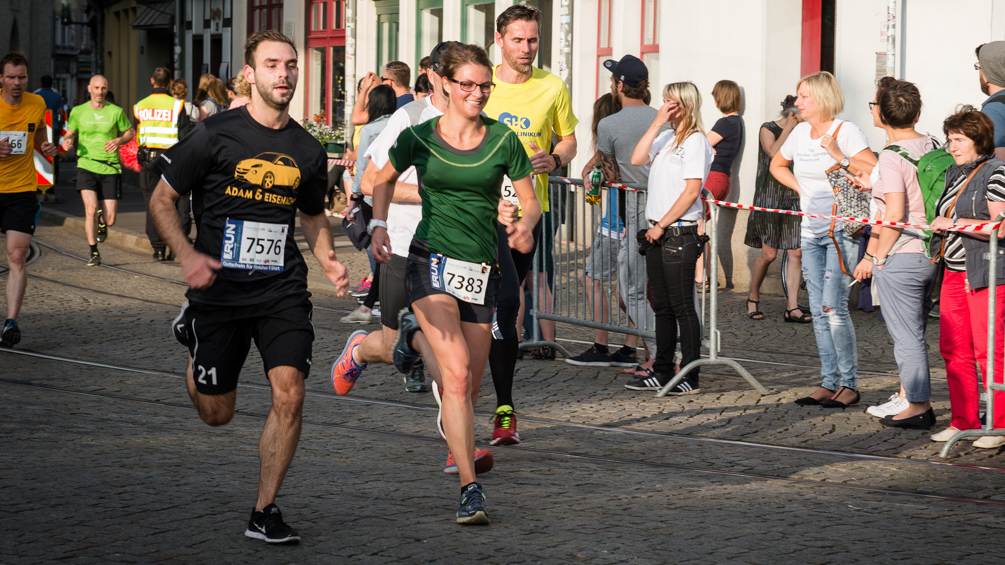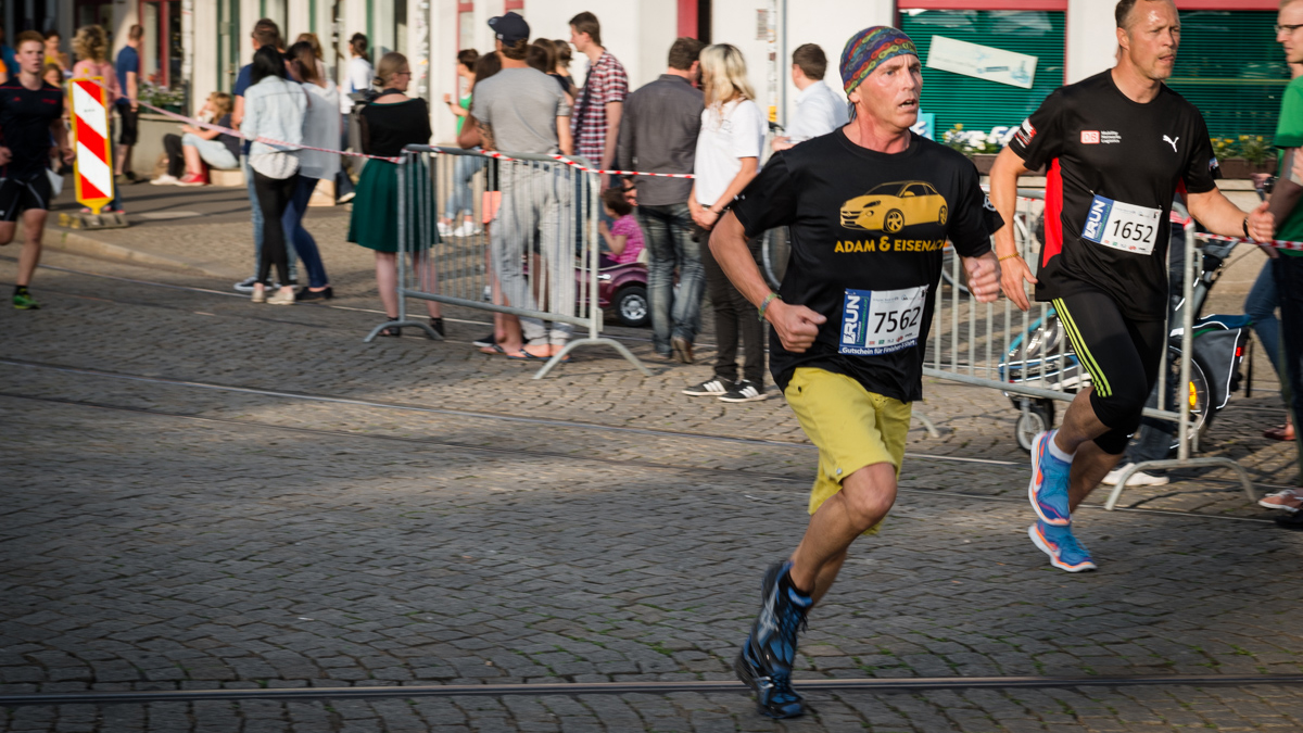 Und das, obwohl Pohl aufgrund der unterschiedlichen Schichtarbeitszeiten die meisten der 44 mitlaufenden Eienacher Kolleginnen und Kollegen noch gar nicht kannte. Das sollte sich aber spätestens am Abend nach dem Lauf beim gemeinsamen Pizza-Essen ändern. Vorher galt es aber noch, mit den anderen 8382 Teilnehmern aus 601 Firmen, Vereinen und Institutionen, darunter Thüringens Verkehrsministerin Birgit Keller und Erfurts Oberbürgermeister Andreas Bausewein, die fünf Kilometer durch die Erfurter Altstadt zu laufen. Kein Problem für Tizian Pohl.