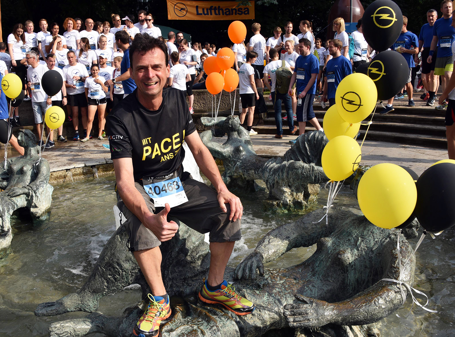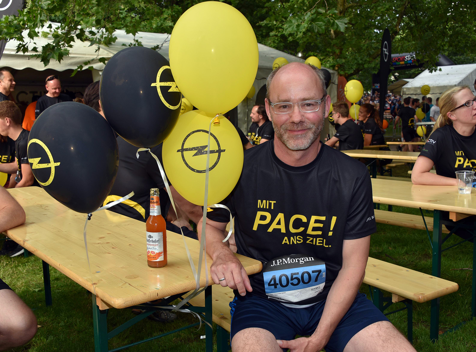 Am Ende aber hatte Petrus ein Einsehen: Pünktlich um 19 Uhr schickte Frankfurts Oberbürgermeister Peter Feldmann mehr als 64.000 Läufer aus 2.388 Unternehmen auf die Piste – darunter auch einen starken Tross in schwarzen Opel-Shirts mit dem Motto „Mit PACE! ans Ziel“.