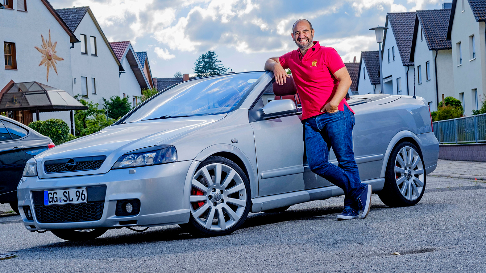- Zwei sonnige Gemüter: Eleftherios Mattheakis und sein Astra G Cabrio.