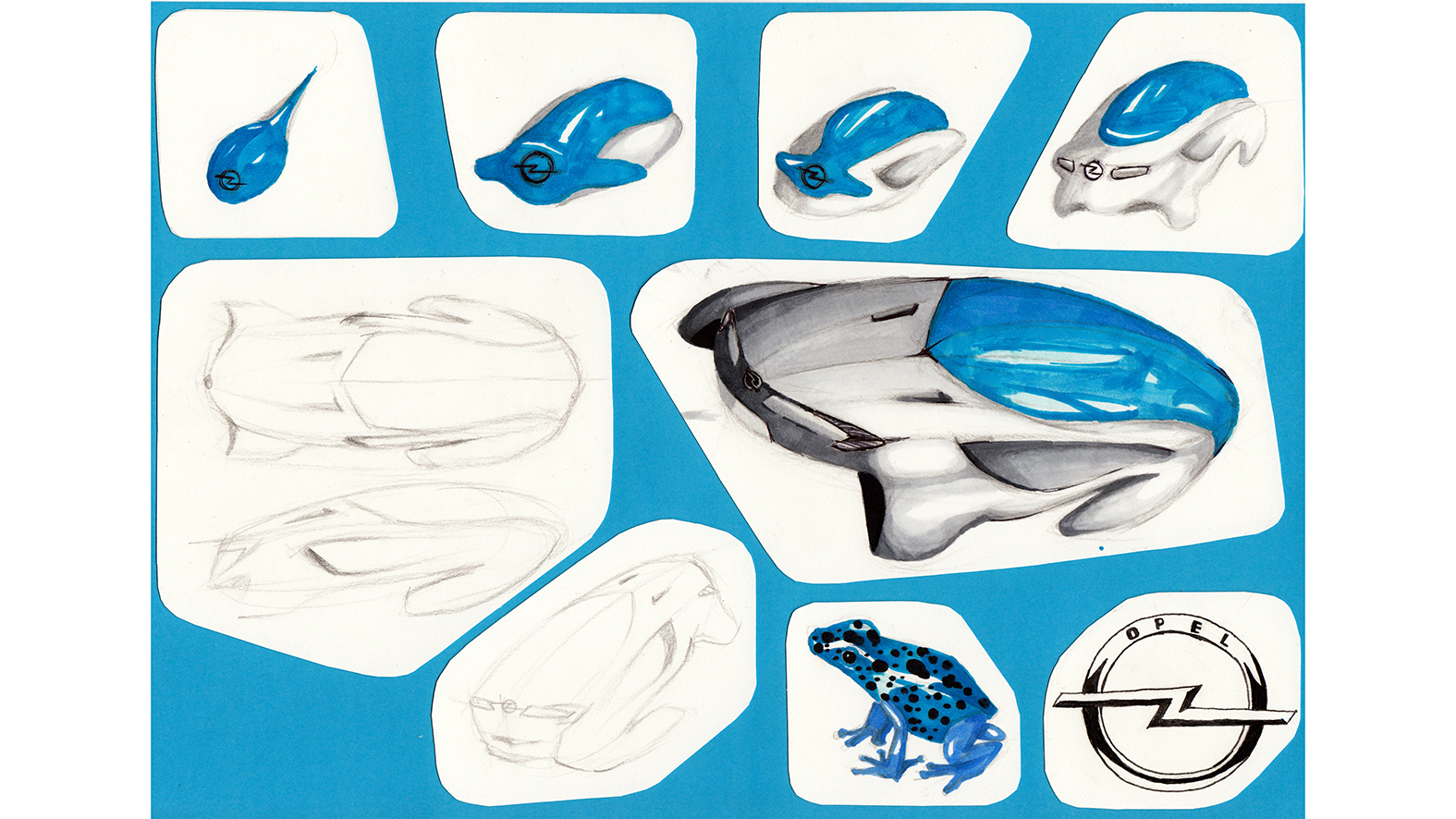 - Tadpole with bolt – by Valentin Natschke. The design studies of the 14-year-old artist are inspired by nature. For the concept of the Opel “Frog II” the student took larvae of frogs and toads as a starting point. He develops the bold yet elegant shapes…