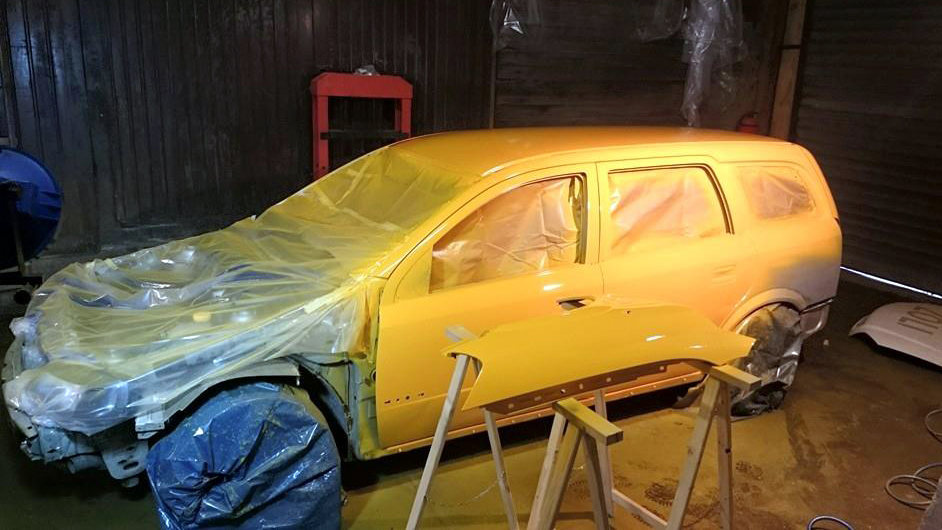 Ein klassisches Gelb: der Kotflügel nach dem Lackieren.