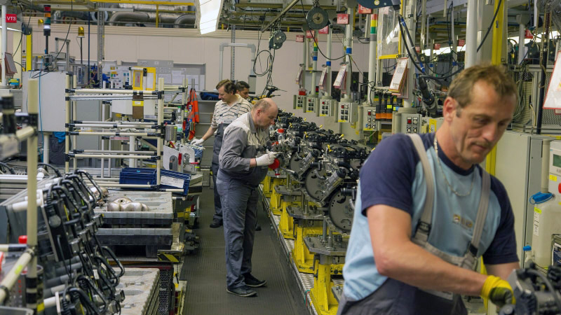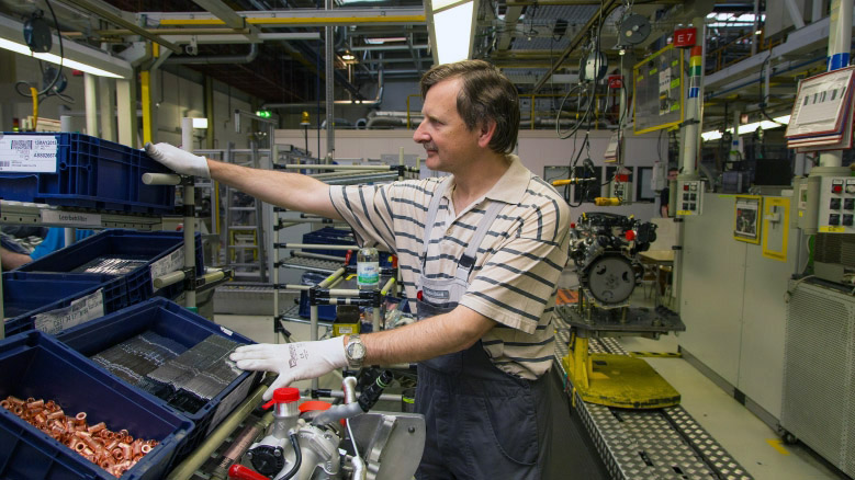 Weitere Detail-Beispiele: Dass der Einlasskrümmer jetzt nur mit einer Schraube vorangelegt wird, brachte 3,5 Sekunden. In der Station 360 wurde ein Andrücker zur Vermeidung von Nacharbeiten eingefügt.