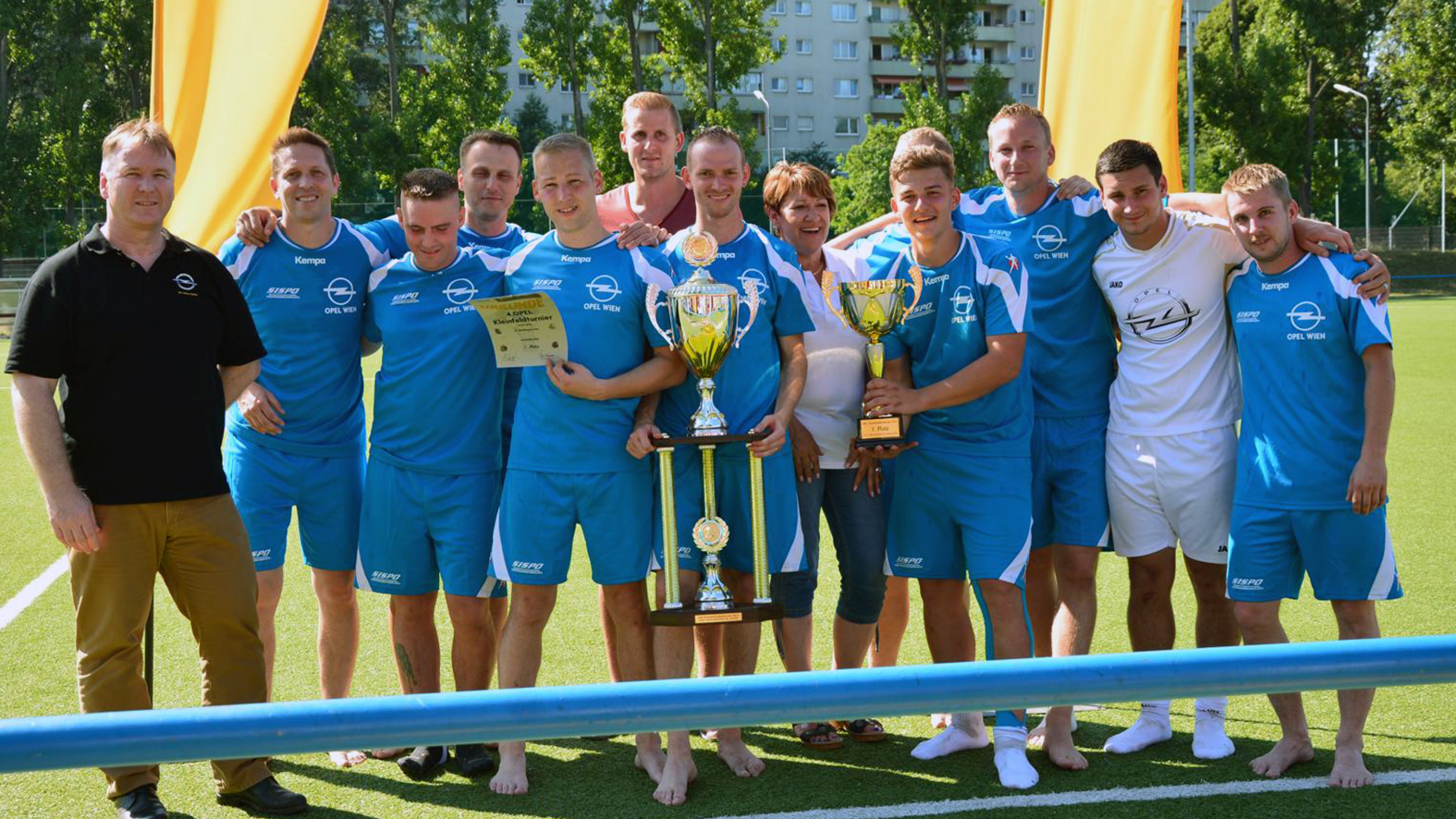 Auf vertraute Seilschaften setzten die Organisatoren auch bei den Schiedsrichtern: Helmut Friedl/Zentralmagazin pfiff auch dieses Jahr beim Kleinfeldturnier und bat außerdem drei Schiedsrichter-Kollegen vom Niederösterreichischen Fußballverband um ihre Dienste als Schiedsrichter.Abgesehen von den 110 Spielern kamen rund 100 Zuseher – KollegInnen, Familienangehörige – zu den Matches, die den ganzen Tag über währten. Für alle Spieler und die Besucher aus dem Werk gab es Freigetränke und freies Buffet vom Grill.Dabei sein! war die Devise, daher wurden die Preise noch vor dem Finale verlost. Fast jeder Besucher, jede Besucherin gingen beschenkt nach Haus – der Arbeiterbetriebsrat hatte ganze Arbeit geleistet und mehr als 150 Sachpreise organisiert.Den 1. Preis – ein Auto für eine Woche – hatte die Geschäftsleitung zur Verfügung gestellt. Günter Graf war der glückliche Gewinner. Christopher Zeleny freute sich über den 2. Preis, ein Wochenende in Bad Hofgastein für 2 Personen – diesen Preis hatte die Gewerkschaft PRO-GE gespendet. Der 3. Preis – gesponsert von der AK Wien – war ein Relaxtag in der Therme Wien für 2 Personen; er ging ebenfalls an Christopher Zeleny.