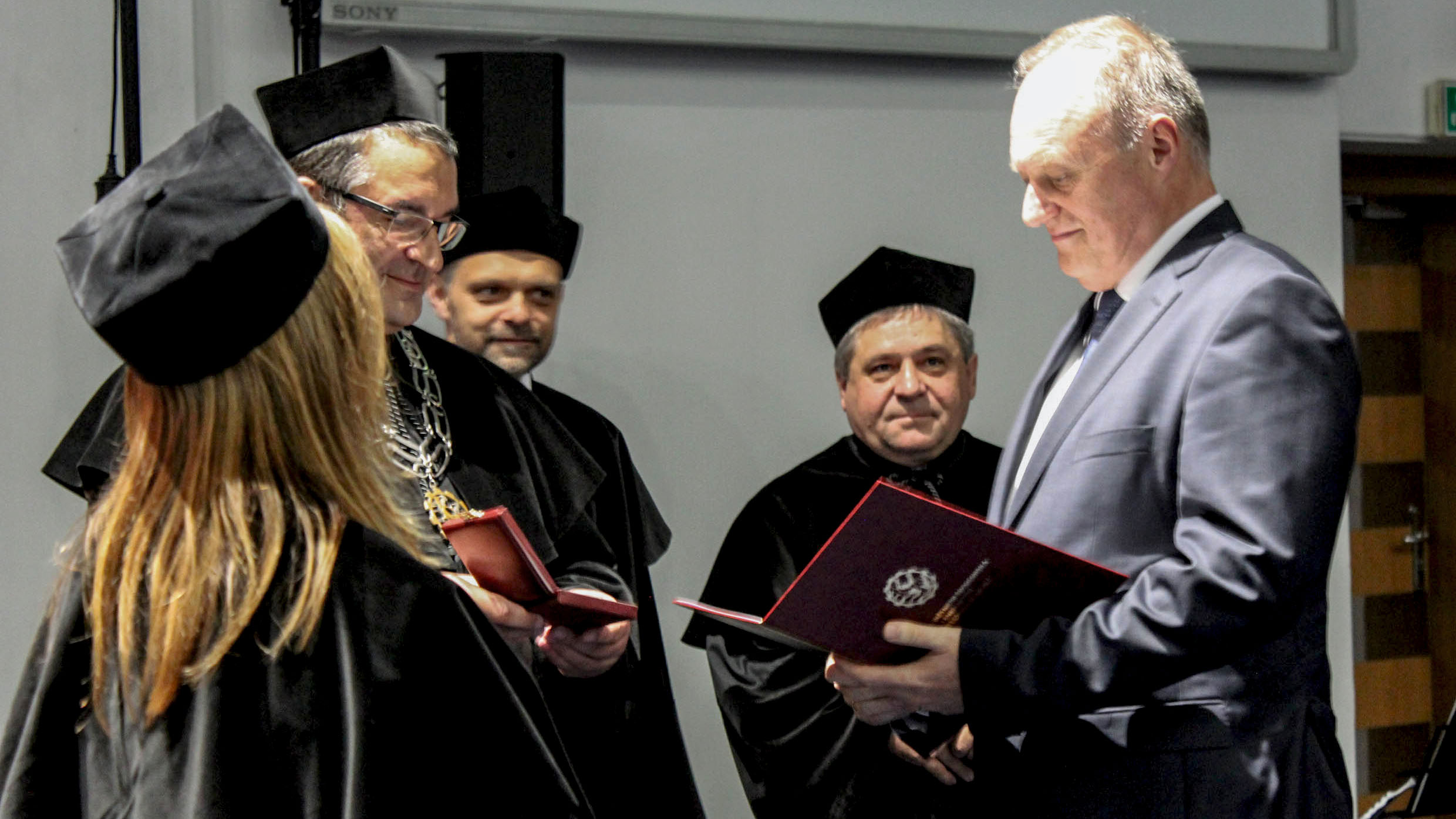 - Na zdjęciu dyrektor generalny Opel Manufacturing Poland, Andrzej Korpak (pierwszy z prawej); prodziekan ds. dydaktyki, dr hab. inż. Zbigniew Żmudka; prodziekan ds. promocji i współpracy międzynarodowej, dr. hab. inż. Grzegorz Nowak, prof. nzw. w Pol. Śl.; dziekan wydziału, prof. dr hab. inż. Andrzej Szlęk; prodziekan ds. dydaktyki, dr hab. inż. Izabela Zimoch, prof. nzw. w Pol. Śl.