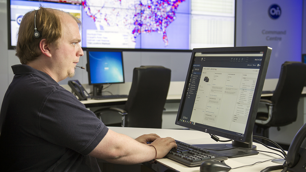 - Headset auf, Bildschirm im Blick: OnStar Notfall-Betreuer Bryan Anta während seiner Arbeit im Call Center.