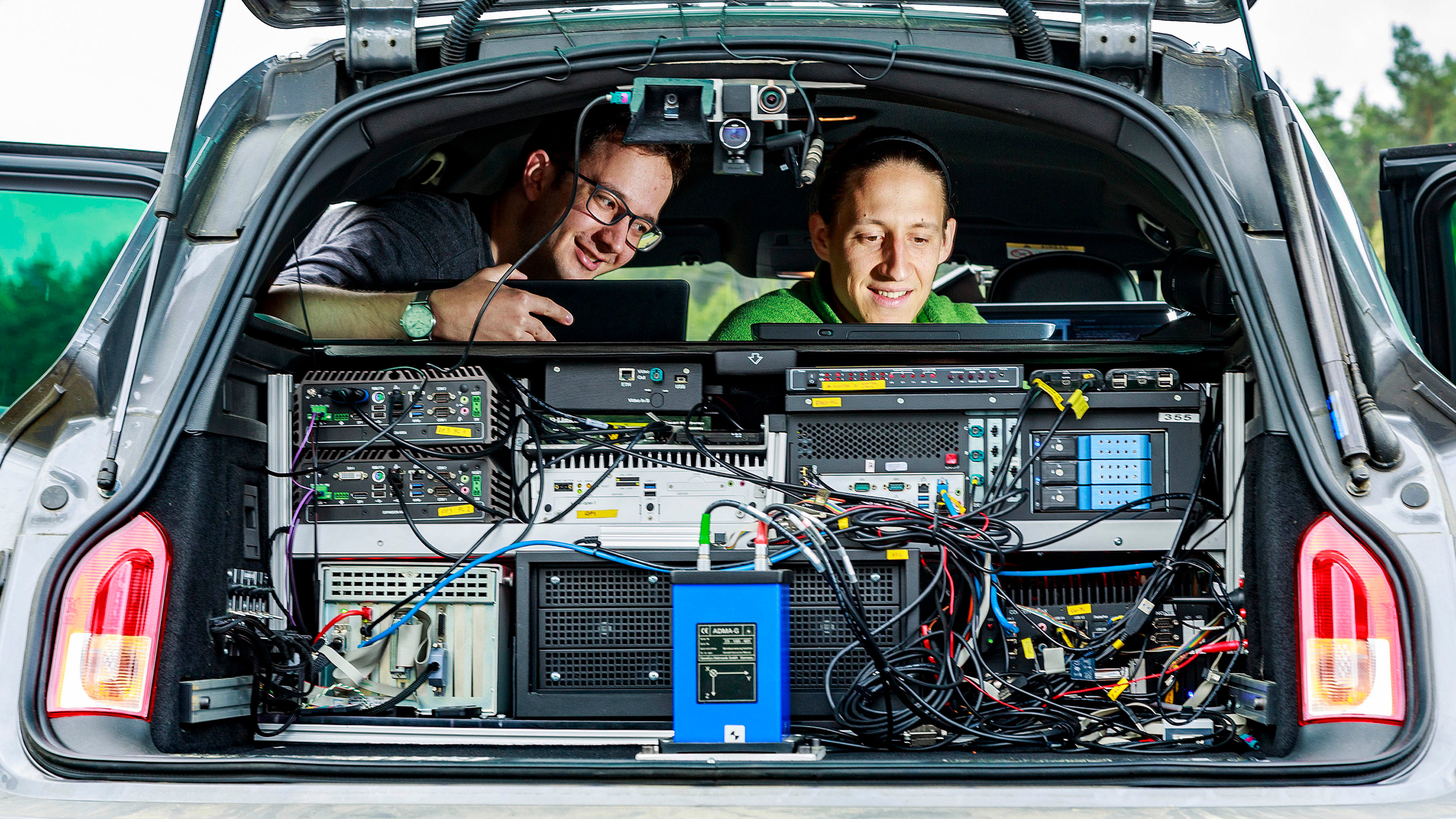 The research alliance: PhD candidates Florian Jomrich (left) and Maximilian Harr are contributing to the development of autonomous driving at Opel.