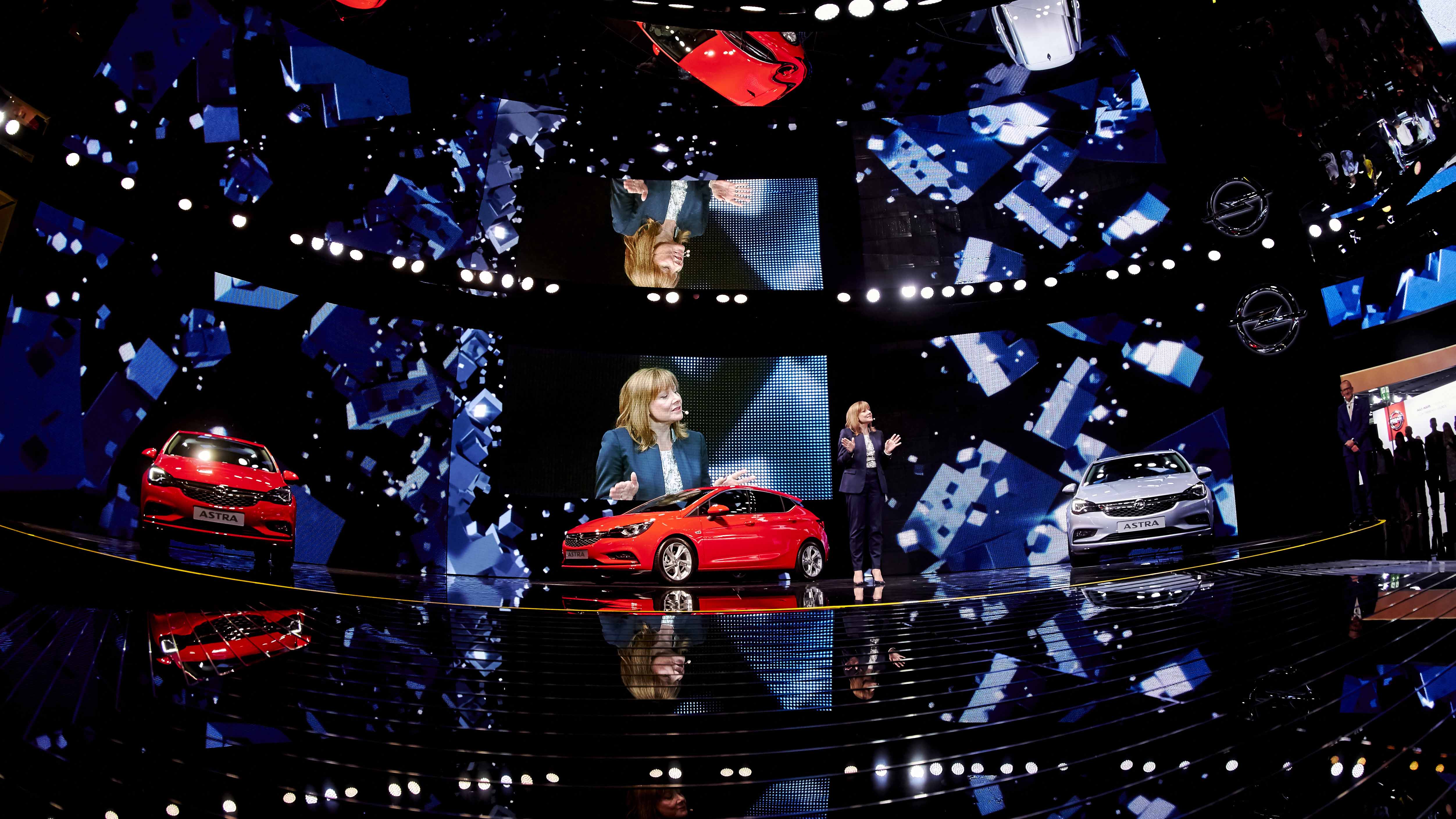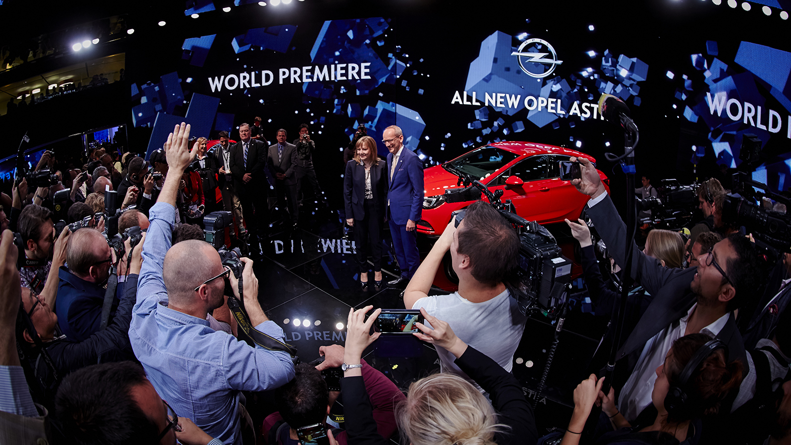 In a flurry of flashbulbs reflected on the shiny black floor and mirrored ceiling, GM CEO Mary Barra comes on stage to unveil a second world premiere with the Opel Group CEO – the Astra Sports Tourer. Mary Barra announces that the product offensive will be accelerated: “Between 2016 and 2020 we will introduce a total of 29 new Opel/Vauxhall cars to the market – including an electric vehicle and a second flagship next to the Insignia.” Crowds of photographers gather around the GM and Opel CEOs, television cameras are set up for interviews with them, the premiere models are pored over.