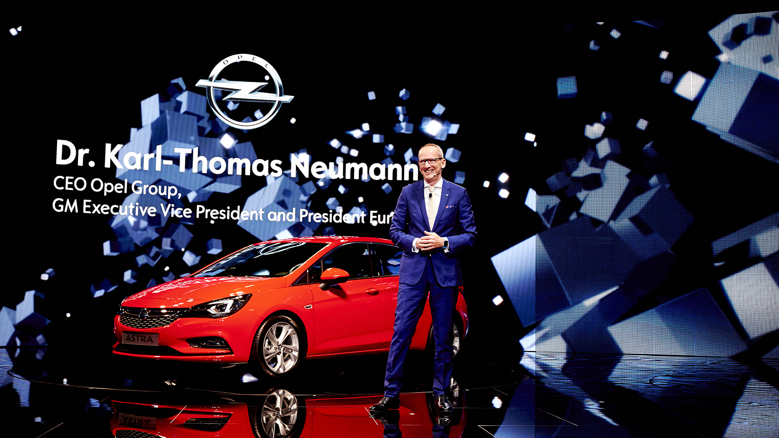 The star is wearing red. Of course. It is September 15, 2015, 9 o’clock sharp. The new Astra glides around the corner, up the ramp and onto the big IAA stage. Behind the wheel of the newest compact-class generation: Karl-Thomas Neumann. And the Opel CEO gets right to the point: “Our new Astra is the best Opel we’ve ever built,” he says, welcoming the 500 journalists from all around the world.