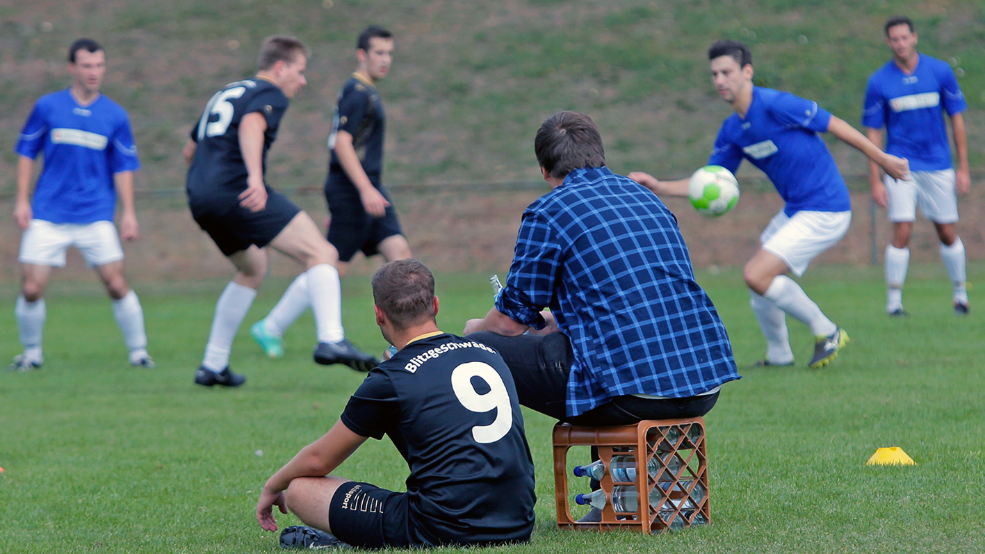 „Erst hast du kein Glück, dann kommt auch noch Pech dazu“, dichtete Bayern-Profi Jürgen „Kobra“ Wegmann einst. Und genauso lief das Turnier fürs Azubi-Team des „Blitzgeschwaders“ auch weiter. Nach der Verletzung von Nicolas Leu ging Tim Lutz ins Tor. Der bekam den ersten Ball auf den Kasten, klatschte ab – und prompt knickte auch ihm das Handgelenk um. Auch nichts Schlimmes, doch mit der Keeperrolle war’s vorbei, Tim spielte daraufhin im Feld weiter. „Qualität von Anfang an“ war von den Azubis ohnehin nicht mehr zu leisten, sie wurden mit 0 Punkten und 3:23 Toren Turnierletzter. „Was soll’s,wir haben uns sowieso nicht viel ausgerechnet – und Spaß gemacht hat’s trotzdem“, so Tims Resümee. Außerdem präsentierte sich das Blitzgeschwader in den vielleicht stylischsten Trikots des Turniers: den Auswärtsleibchen des 1.FC Kaiserslautern aus der Spielzeit 2014/15. Einfach nur gut aussehen ist schließlich auch was wert.